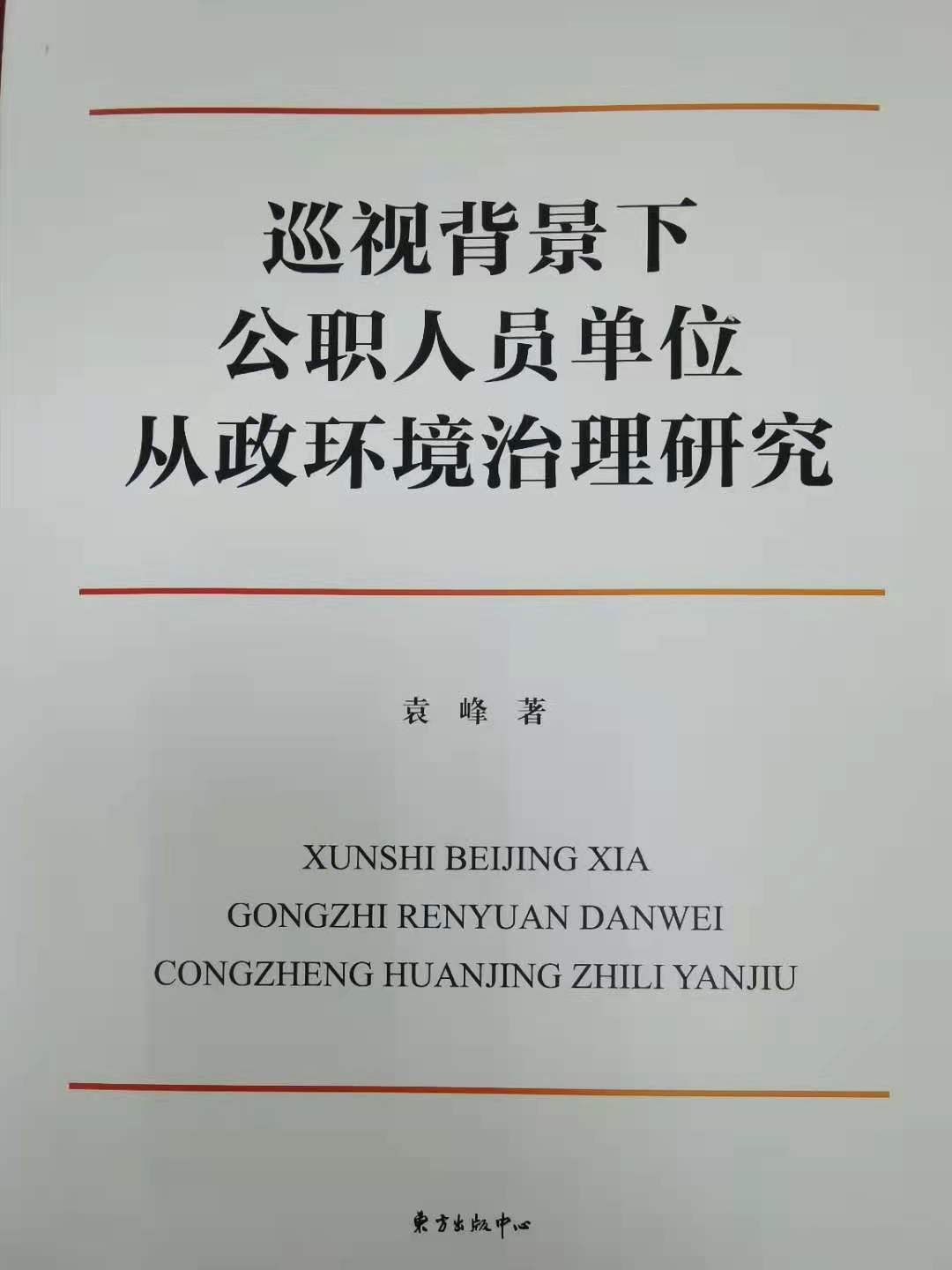 校(院)研究生部袁峰教授所著的《巡视背景下公职人员单位从政环境治理研究》一书于2021年7月由东方出版中心出版。