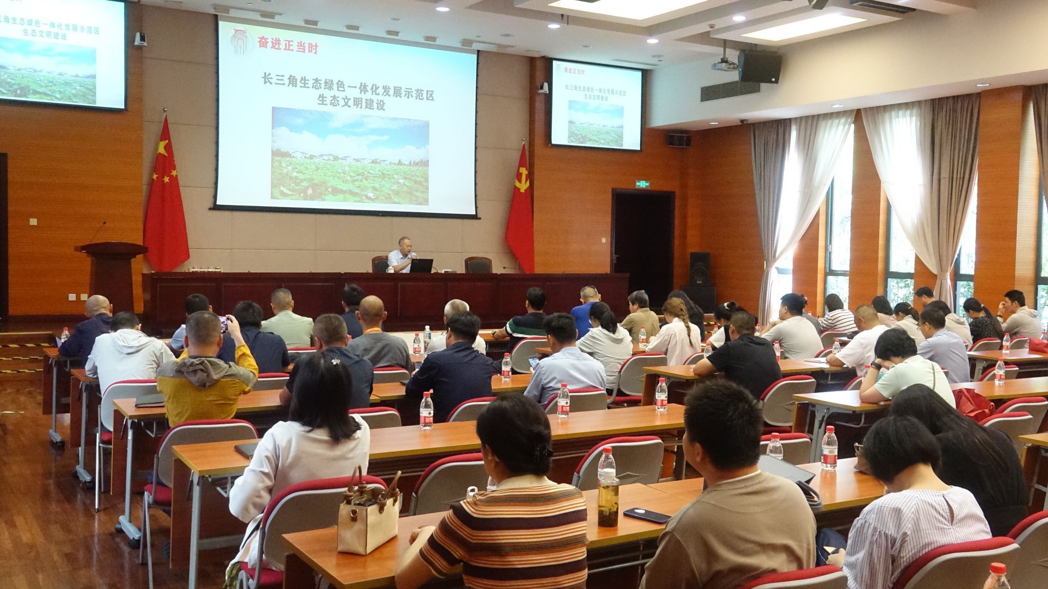 校区管理办公室党支部书记黄辞海以“长三角生态绿色一体化发展示范区生态文明建设”为题讲授专题党课,介绍了习近平总书记亲自擘画长三角一体化发展战略,解读了长三角一体化发展规划纲要和有关行动方案,以及规划区、中心区、示范区、先行启动区、协调区基本情况,并重点介绍了示范区生态文明建设的目标愿景、建设成效。