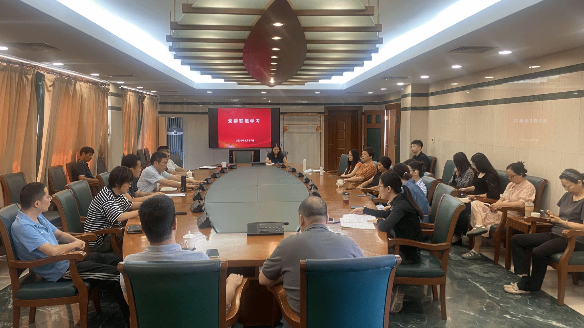 9月17日上午,图书馆党支部开展党群联组学习。四位馆员交流分享了参加中国图书馆学会2025年年会和2025年科普阅读推广研讨会的学习成果。全体馆员参加。