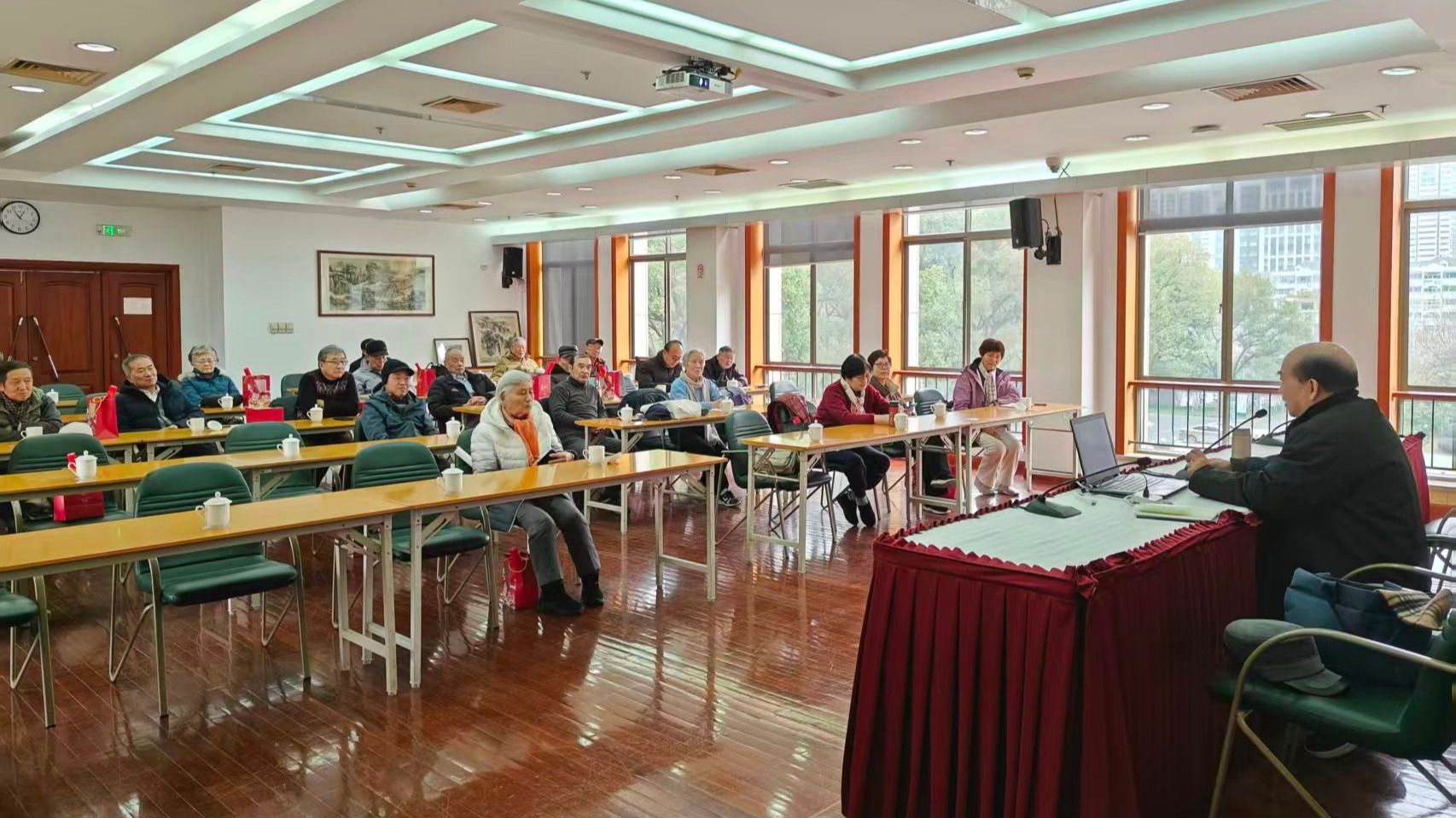 新成立的市委党校“红潮”理论宣讲团讲师、党史党建教研部肖昌进教授,以“夯实基础 全面发力 开创中国式现代化建设新局面”为题,为老同志们带来了一场主题鲜明、内涵深刻的专题党课。他细心梳理全会概况与《建议》总体框架,深入解读《建议》重点内容与新提法,深度剖析全会新要求新举措,并结合实际,提出了“抓落实、见成效”的实践路径。
