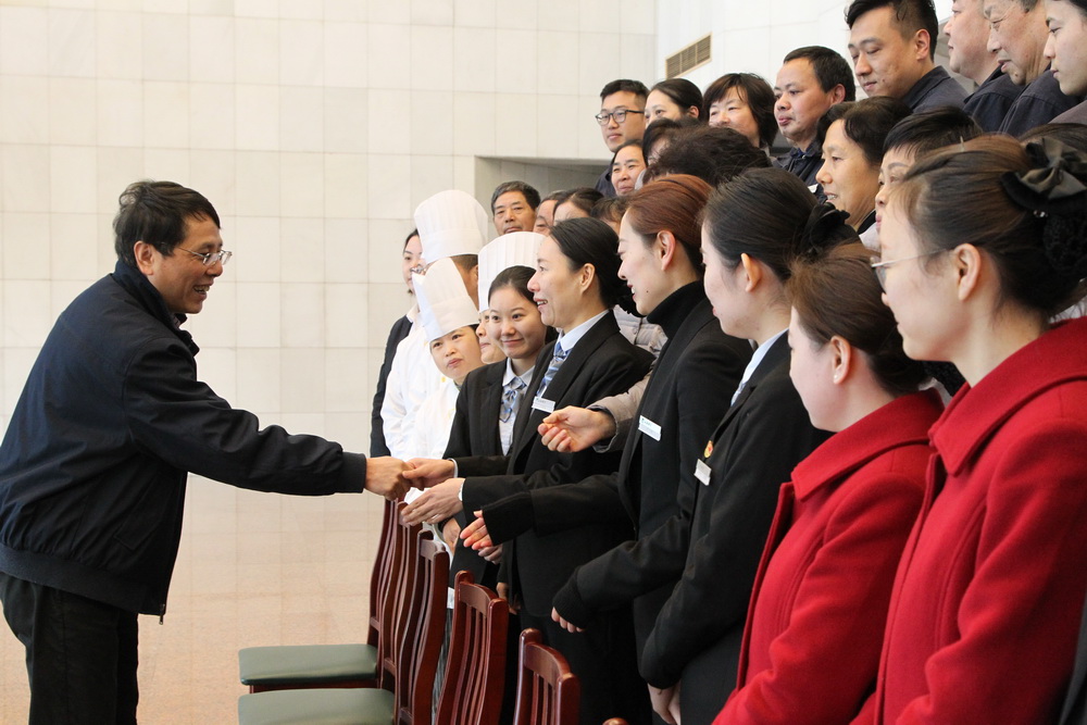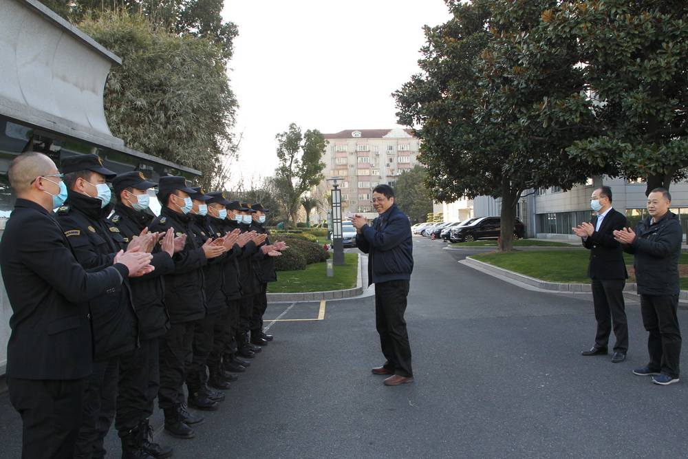 徐建刚一行先后来到海兴大厦、后勤服务中心、南洋万邦、上勤高级楼宇、上海宗保等团队。 徐建刚代表校委向参与保障服务的全体人员表示感谢并指出,后勤服务队伍平时默默无闻,工作辛苦,不在前台,但同样是学校事业发展不可或缺的一支力量。此次会议疫情防控要求高、保障服务任务重,各团队坚决按照办会要求和校委决策部署,群策群力,团结一心,克服困难,连续奋战,保障了会议胜利召开,得到了政协委员和办会各方的高度肯定,充分展现了党校服务品牌,充分展现了党校后勤人的素质形象。