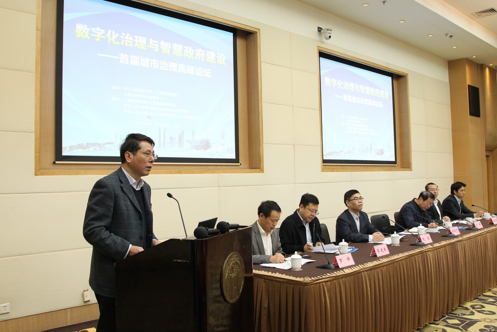 本网讯 11月30日,由上海市委党校(上海行政学院)与上海市城市运行管理中心共同主办,上海市改革创新与发展战略研究会、上海市委党校政府治理现代化研究智库、上海市委党校公共管理教研部承办的首届城市治理高峰论坛在我校举办。上海市委党校(上海行政学院)常务副校(院)长徐建刚为论坛致辞,副校(院)长曾峻主持论坛开幕式。来自清华大学、复旦大学、阿里巴巴、深圳华傲数据和上海市城运中心等单位的专家围绕着“数字化治理与智慧政府建设”这一主题展开研讨。