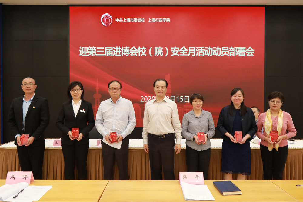 会议通报了《迎第三届进博会校(院)安全月活动方案》,播放了安全宣传短片。公共管理教研部主任罗峰、淀山湖校区管理办公室副主任焦俐敏和上海宗保党校项目经理许志刚作了交流发言。现场还签订了《治安消防安全责任书》,发放了《校园安全宣传手册》。