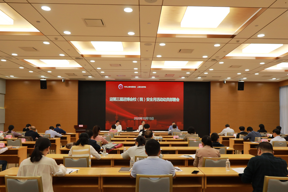 本网讯 10月15日上午,2020年迎第三届进博会校(院)安全月活动动员部署会在海中楼101教室召开。副校(院)长、校(院)安全领导小组组长朱亮高出席会议并讲话。校(院)有关部门主要负责人,校(院)安全工作领导小组成员、各部门安全员、物业服务单位主要负责人参加会议。