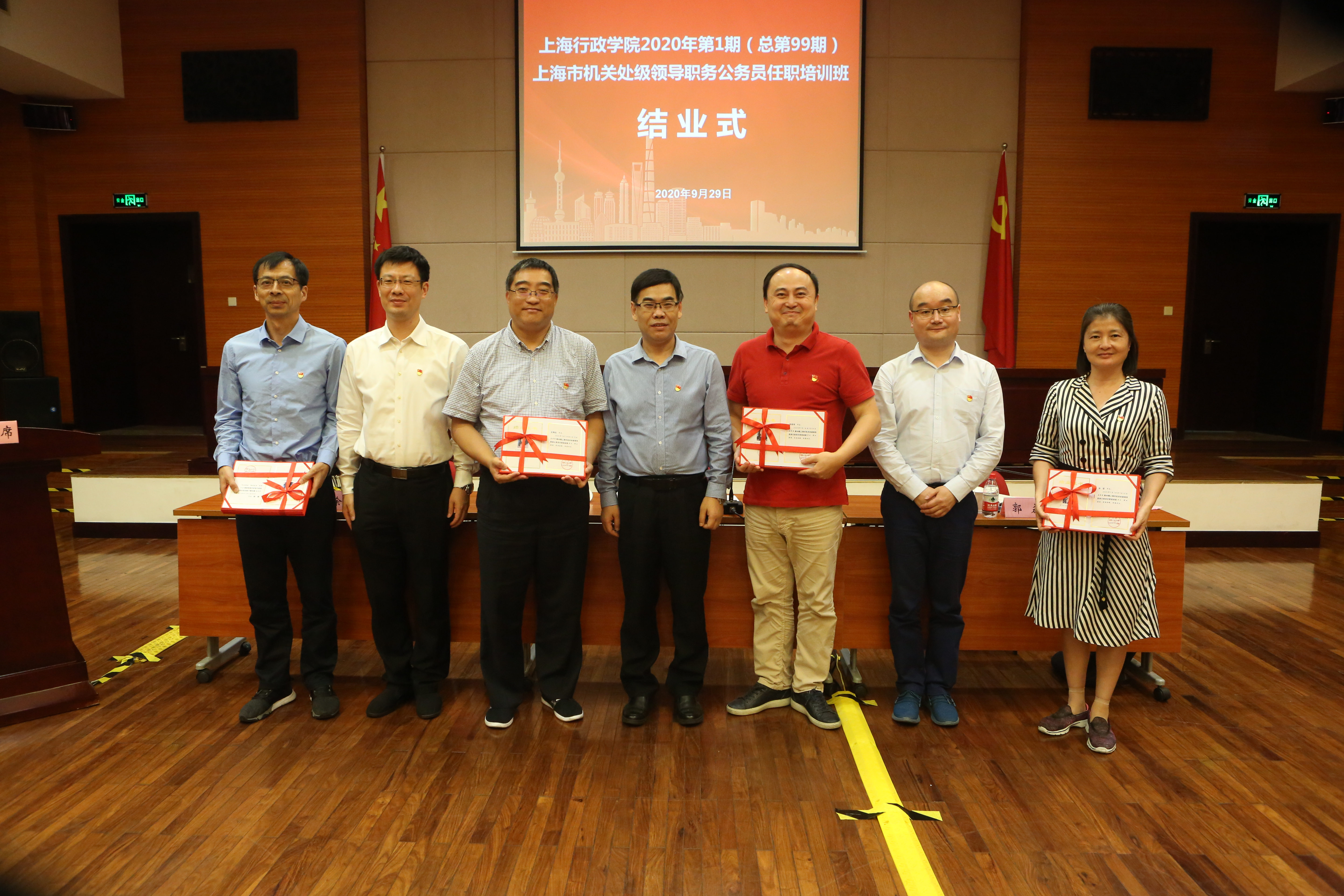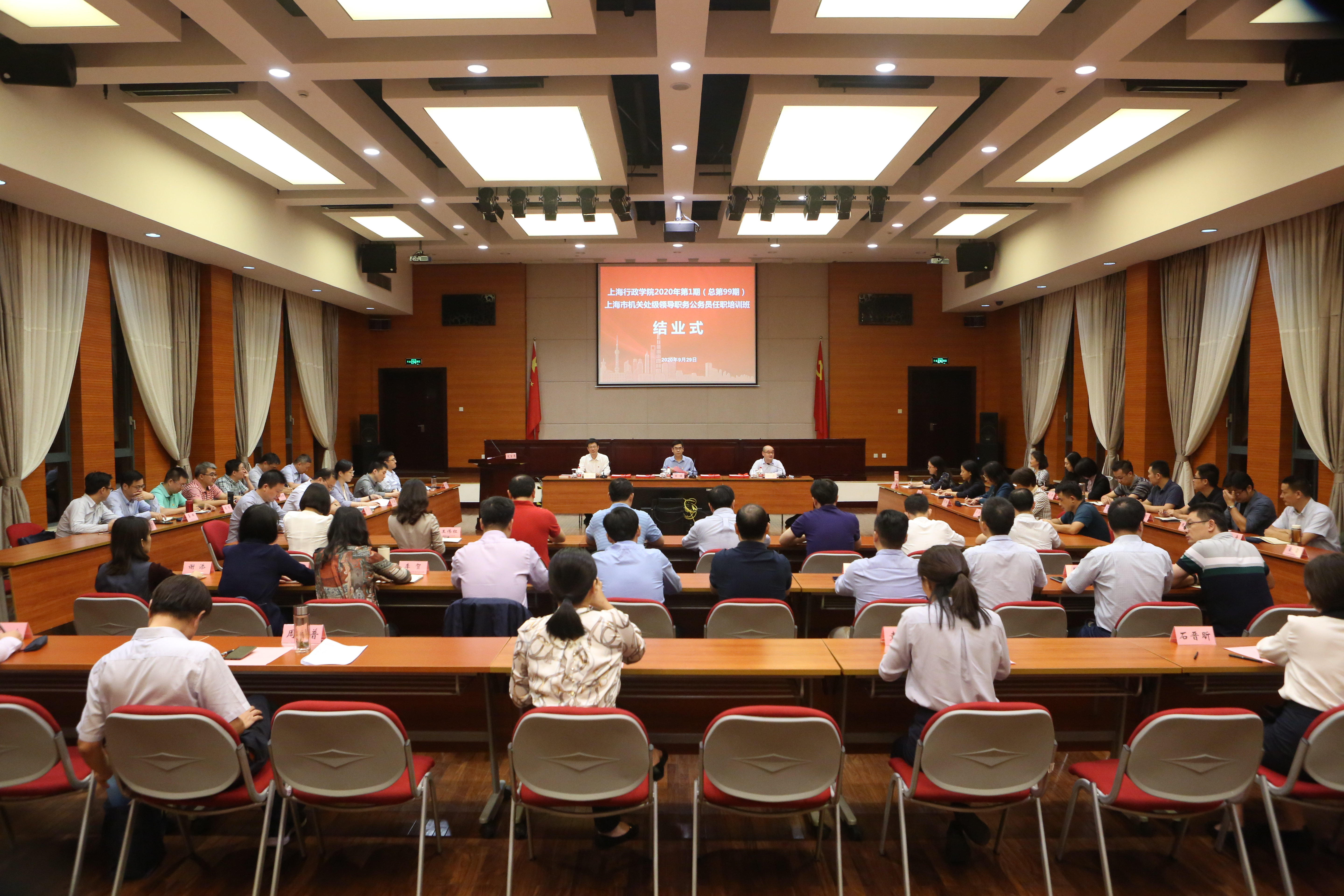 本网讯 9月29日晚,第99期上海市机关处级领导职务公务员任职培训班在淀山湖校区结业。市委党校(上海行政学院)副校(院)长曾峻出席结业式并讲话,市委组织部公务员二处处长郭磊主持结业式,市委党校(上海行政学院)公务员培训处处长涂晔出席。