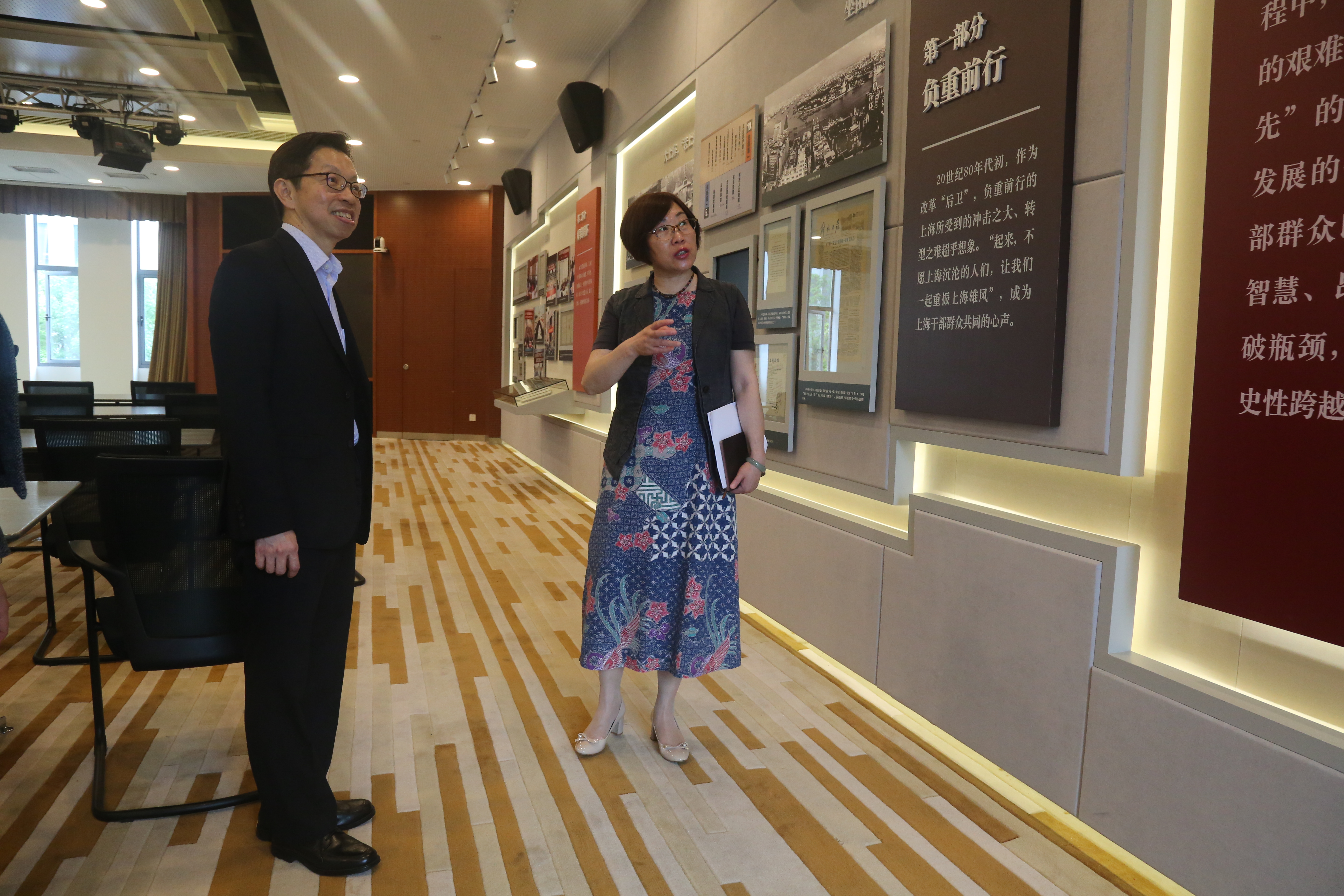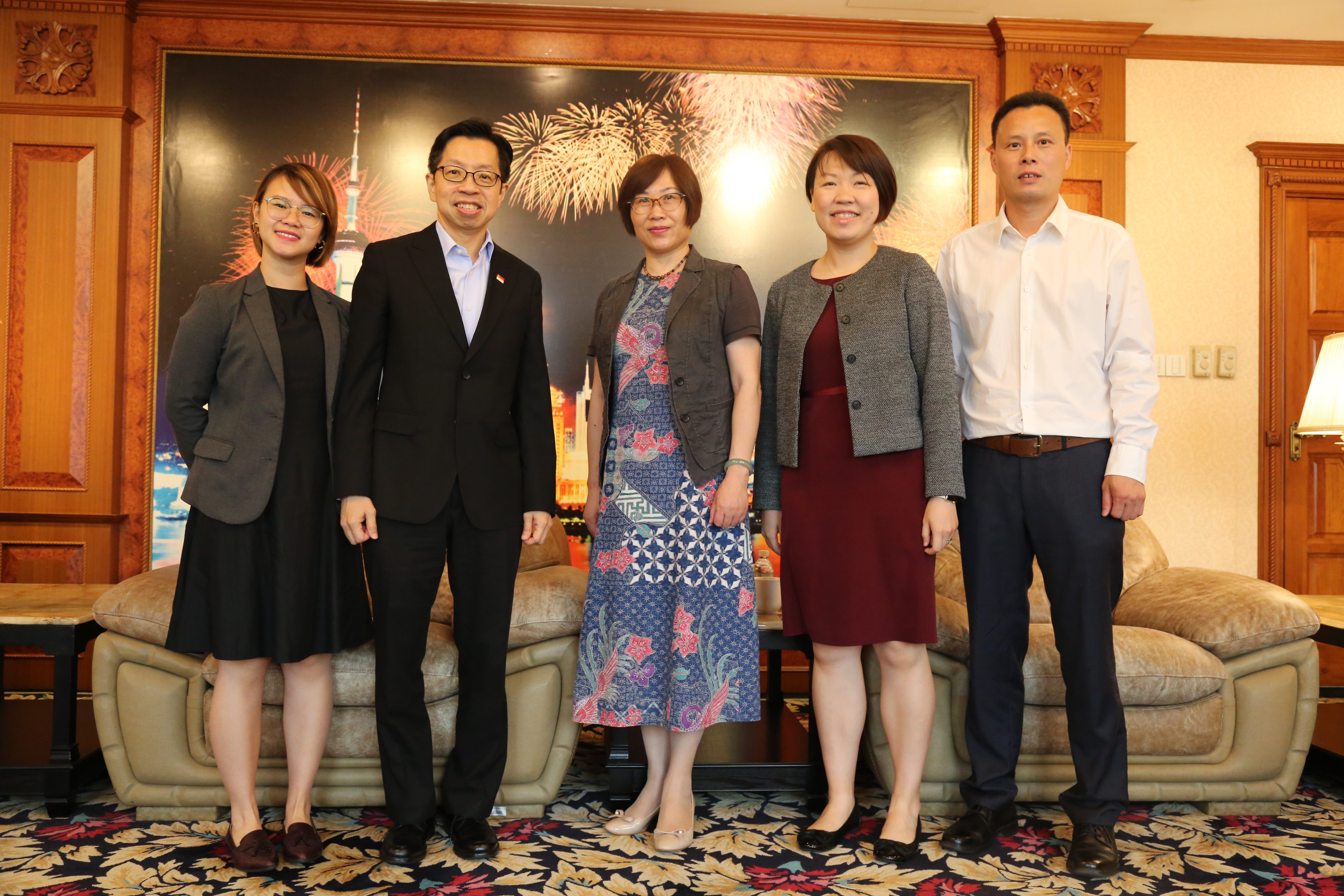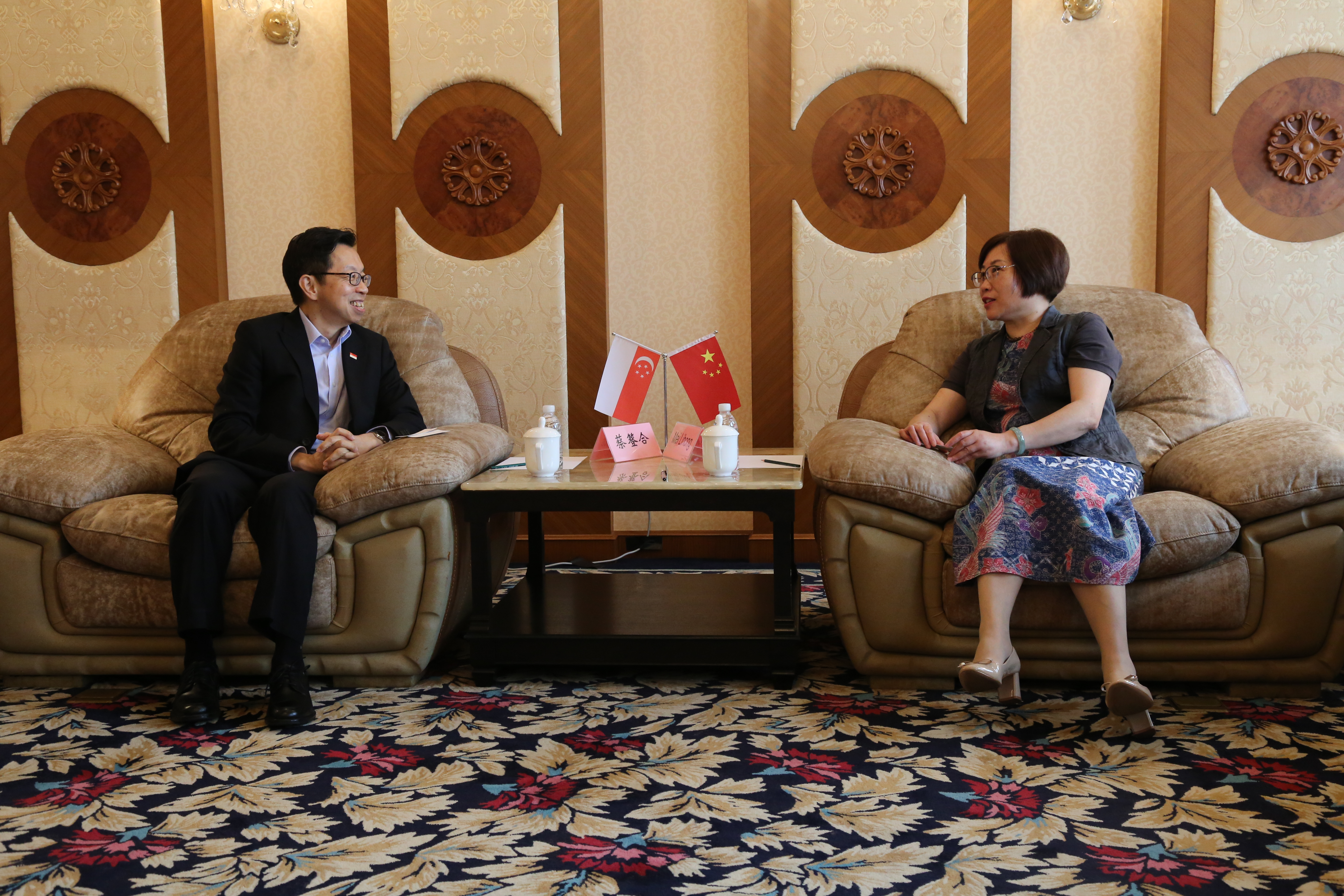 本网讯 6月10日上午,新加坡驻沪总领事蔡簦合一行3人来上海行政学院进行工作访问,教育长梅丽红主持会见。