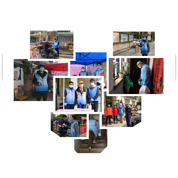 在玉兰园社区,石君磊老师主要参与隔离户垃圾清运、送快递、前台接待、大门岗值守等工作。近日该小区有一户一家三口从湖北省荆州市公安县自驾返沪,根据要求在家严格进行隔离。石君磊老师每天上门收生活垃圾并专门单独处理,还要负责在楼道沿路喷消毒液,“全副武装”(口罩、一次性雨披、护目镜和一次性手套)的他,穿不到一会儿就觉得汗如雨下,也对奋战在一线的医护“战士们”的艰辛感同身受。