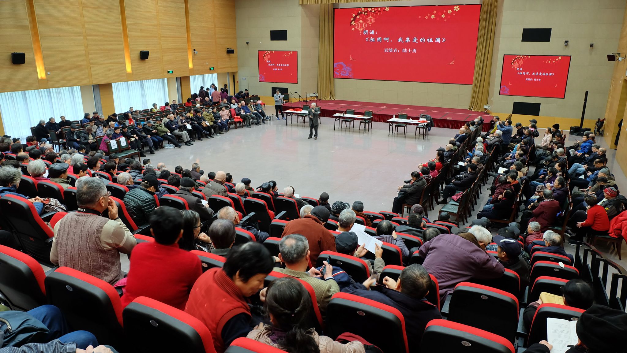 老同志们自编自演了丰富多彩的文艺节目,赢得阵阵掌声。歌咏兴趣小组用一场热情洋溢的快闪活动,演绎了一曲激动人心的《我和我的祖国》,点燃了现场气氛;摄影兴趣小组的精美摄影作品展示了老同志积极进取的精神风貌;文学艺术兴趣小组男生小合唱《莫斯科有我的爱》、退休九支部和非党二组小合唱《团结就是力量》、扇子舞《荞麦花》、诗歌朗诵等,体现了多才多艺的老同志们健康向上的老年生活情趣。节目中间还穿插了“迎新春送春联”和趣味游戏,把现场气氛推向了高潮。