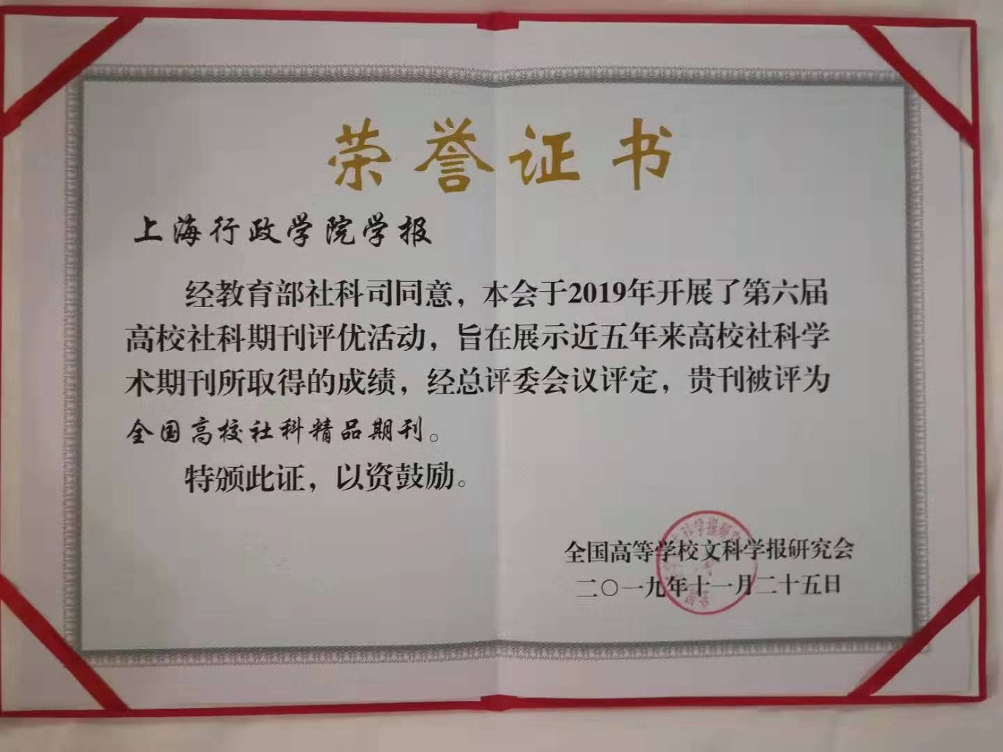 会议从全国千余家高校社科学报中评选出“全国高校社科名刊”“全国高校社科精品期刊”和“全国高校社科优秀学报”三个层次的期刊奖项。《上海行政学院学报》继上届入选“全国高校社科精品期刊”后,在强手如林的社科期刊竞争中再次入选,标志着《上海行政学院学报》在精品办刊的道路上继续保持高水准。