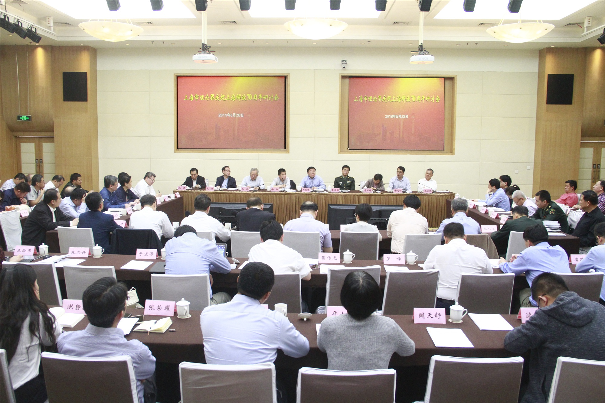 市委党史研究室副主任严爱云、市社联主席王战、市委组织部原副部长冯小敏、上海大学社会学院副院长黄晓春、市发展改革研究院副院长魏陆、上海社科院院长张道根、上海全球城市研究院院长周振华、市委党校副校长郭庆松分别就“老一辈革命家对上海解放的巨大贡献”“上海城市精神与改革开放”“加强城市基层党建是上海发展的重要组织保障”“党建引领:上海‘五个中心’建设目标的形成与实践探索”“富于创造,勇于超越,加快构筑上海长期战略优势”“在融入长三角一体化中谋求上海高质量发展”“新时代上海继续当好改革开放排头兵的几点思考”等议题作专题发言。