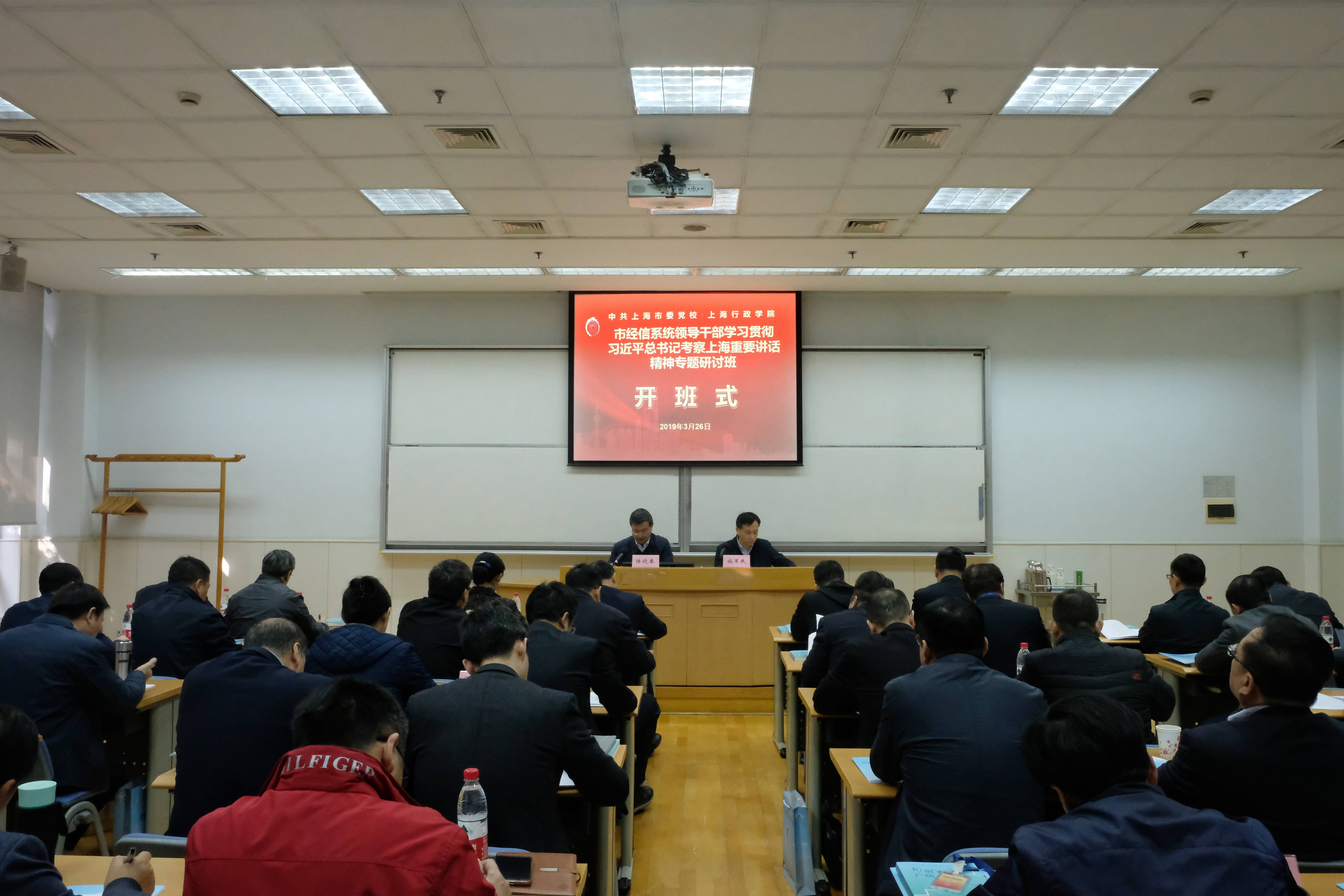 本网讯 3月26日28日,市经信系统领导干部学习贯彻习近平总书记考察上海重要讲话精神专题研讨班在我校举办,市经信工作党委书记陆晓春、副书记马列坚分别出席开班式和结业式并讲话。来自央企驻沪单位的28名局级领导干部和20名处级领导干部参加了培训。开班式前,市委党校常务副校长沈炜会见了陆晓春。