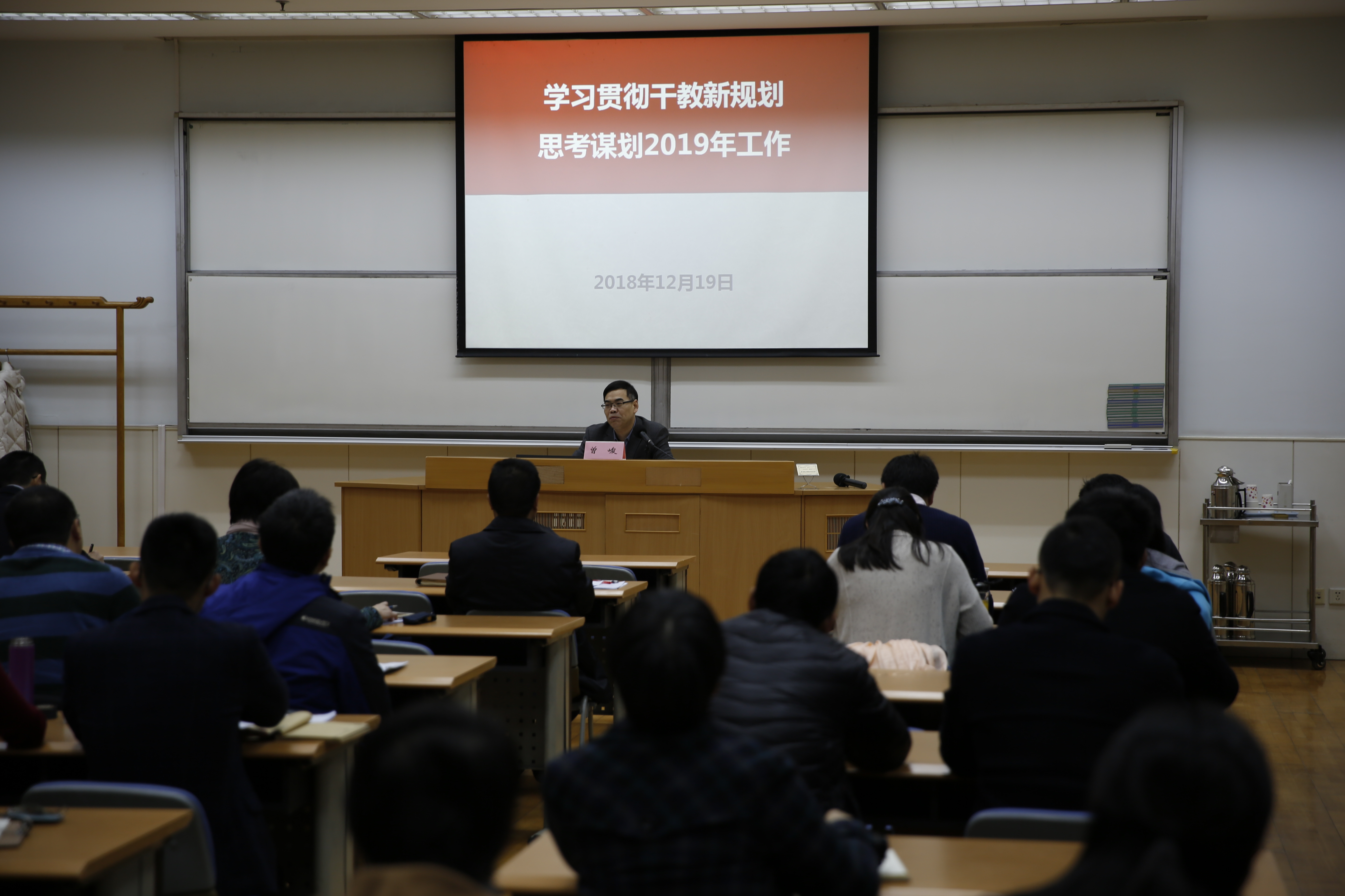 专题辅导中,曾峻以“学习贯彻干教新规划,思考谋划2019年工作”为主题,着重为大家介绍了中央和上海两个规划的总体情况、两个规划的重点内容,并就落实两个规划提出要聚焦针对性实效性谋划2019年校院干部教育培训工作。