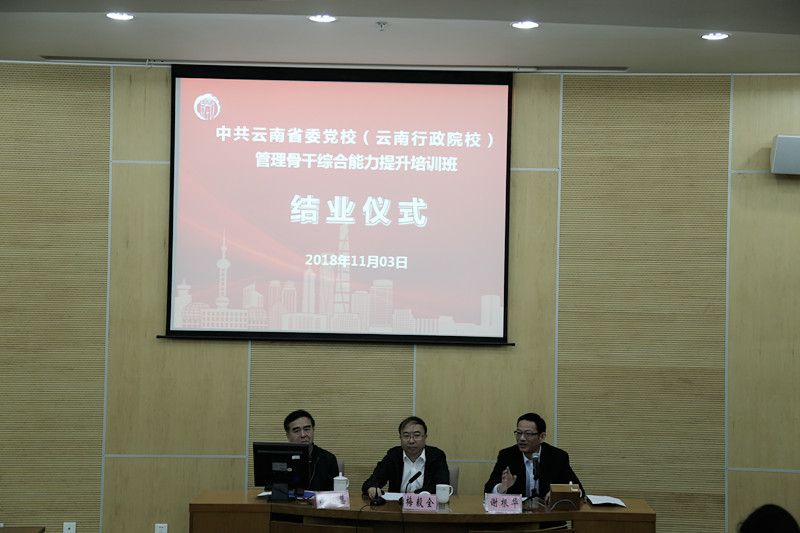 云南省委党校(云南行政学院)管理骨干综合能力提升培训班、有关方面工作人员50余人参加结业式。