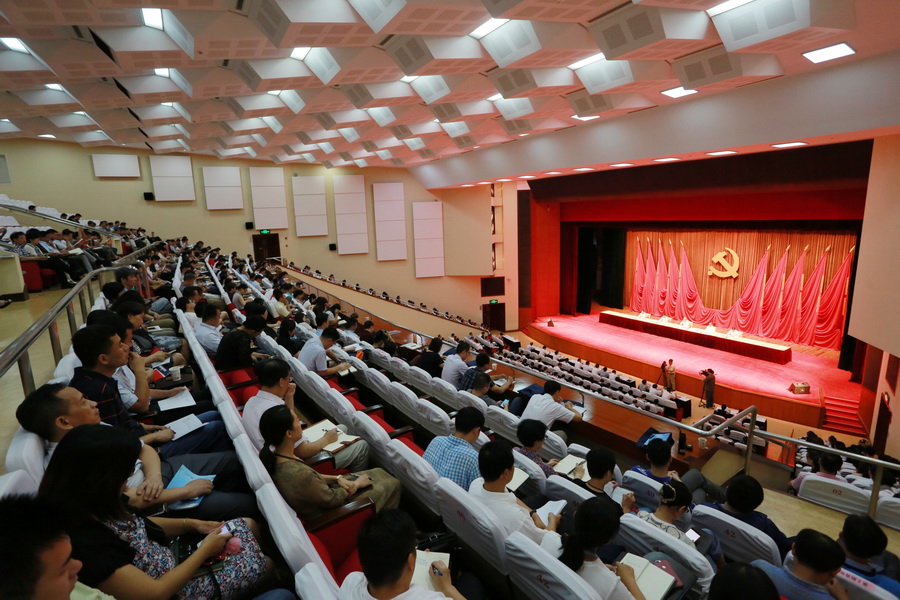 第113期领导干部进修班、第56期中青年干部培训班、2018年上海市党外中青年干部培训班、第69期党政机关正处级干部轮训班、第93期上海市机关处级领导职务公务员任职培训班、第3期处级干部进修班、第2期青年干部培训班、国有企业领导人员理论教育和党性教育专题进修班、第56期高级专家研修班、“两新”组织高层次人才第15期民营企业家研修班、第63期纪检监察干部进修班、第33期中青年理论骨干学习班、市合作交流系统基层党组织书记专题培训班等13个班次的学员,以及市委市政府有关部门负责人、各区委党校常务副校长,校院领导和全体教职工、研究生参加开学典礼。(图片由朱锋提供)
