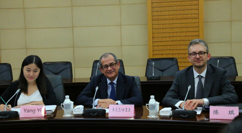 沈炜对代表团的来访表示欢迎。他说,特里亚部长是上海行政学院的老朋友,双方自2010年签署正式的合作备忘录以来,一直保持着紧密的联系。特里亚部长在与上海行政学院的交往过程中,历经了意大利国家行政学院院长、意大利罗马大学经济学院院长、意大利经济和财政部部长等职务的变化,但始终不忘初心,保持着与我院的友好往来。特里亚担任部长首次访问第一站选择中国,并在上海行政学院秋季开学前来访,足见对双方交往的重视。