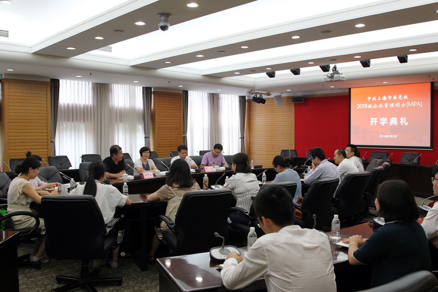 本网讯 9月3日下午,中共上海市委党校2018级公共管理硕士(MPA)开学典礼在海兴教学楼202教室举行。教育长梅丽红,研究生部主任罗峰,科社教研部主任程竹汝,公共管理教研部副主任董幼鸿出席。研究生部全体老师及2018级公共管理硕士班全体新生参加典礼。