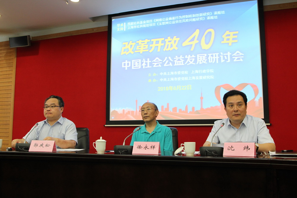本网讯 6月22日下午,校院召开“改革开放40年:中国社会公益发展”研讨会。常务副校院长沈炜出席并致辞,副校院长郭庆松主持开幕式,中国社会工作教育协会会长、华东理工大学徐永祥教授作主旨演讲,中国社会学会副会长、南开大学社会建设研究院院长关信平教授作会议小结。