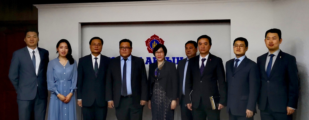 在蒙古访问期间,我驻蒙大使馆邢海明大使会见了梅丽红一行,梅丽红为使馆作形势报告。