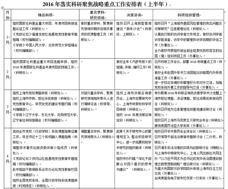 会议指出,上半年,科研口围绕主业主课做了大量工作。一是在课题选择、学科建设、研讨会举办、期刊工作、对外交流等方面更加凸显出主业主课要求,今后要进一步提高服务主业主课的精准度,做出更大贡献。二是决策咨询、智库建设进展明显。上海市决咨课题历史性获得7项,其中总校获得6项、第五分校获得1项。决咨成果多次获得市领导批示。