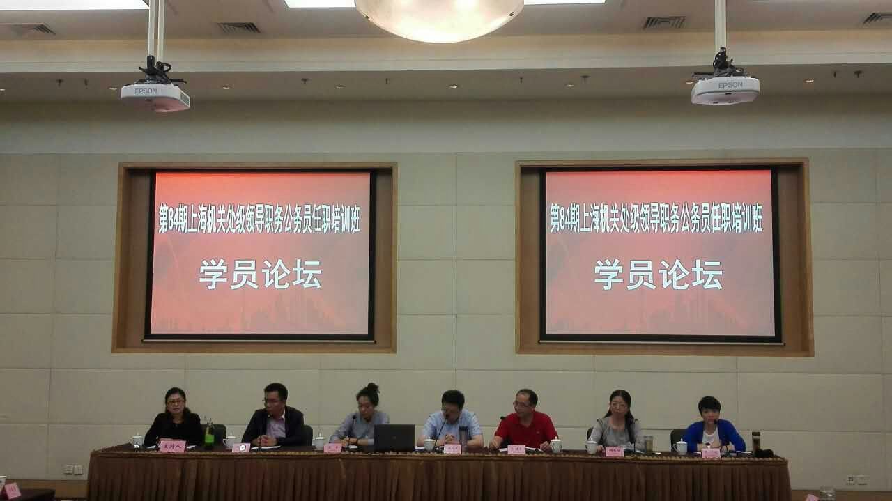本网讯 5月26日下午,第84期机关处级领导职务公务员任职培训班举行第一次学员论坛活动。论坛分为上下两场,主题分别是“公共安全与政府职能转变”和“处级公务员公共服务能力提升”。班主任马莉老师、教学组长宁本荣老师参加论坛。