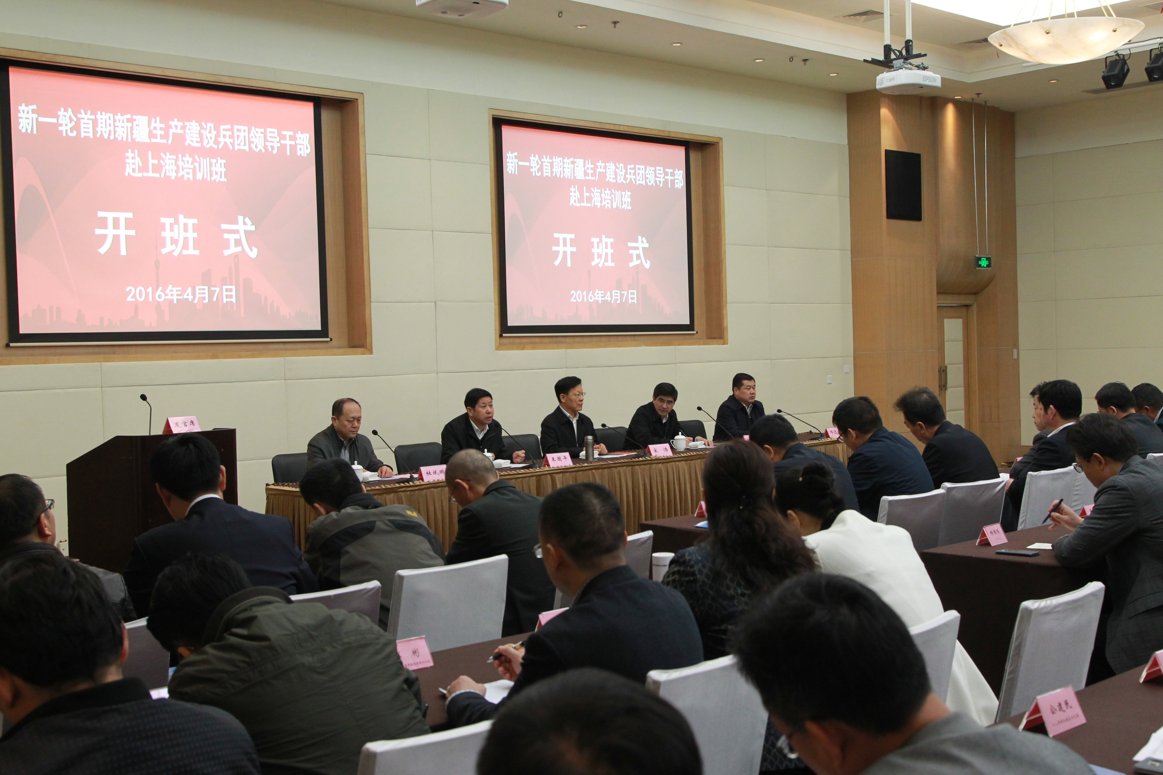 新疆生产建设兵团第1期经济社会发展专题研讨班、第1期团处级干部培训班、第1期企业高级管理人员培训班等3个班次的全体学员参加了开班式。