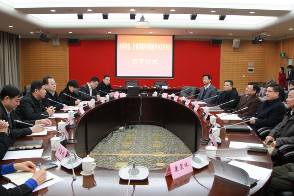 本网讯 12月21日,常务副校院长王国平与市外办主任张小松签署校院与市外办友好协议书。这是校院第一次同大口委办签署友好合作协议书。校院副校院长郭庆松,校委委员、副巡视员李宁出席。组织人事处、教务处、培训处和外事处等部门负责人,及市外办领导和各处室负责人共同出席见证签字仪式。