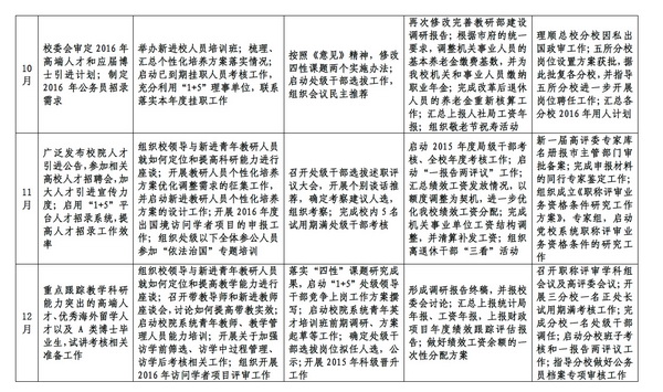 会议指出,要结合校院“十三五”发展规划的制定实施,重点研究解决三方面问题。一是要研究解决干部队伍“四性”建设课题成果落地问题。二是要研究解决紧缺学科高端人才引进问题。三是要研究解决优化教研人员挂职锻炼问题。