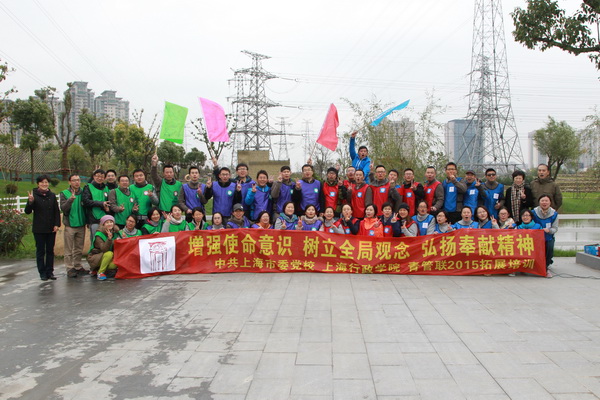本网讯 为进一步增强使命意识、树立全局观念、弘扬奉献精神,加强校院青年管理人员的队伍建设,提升青年队伍的凝聚力和执行力,11月25日,校院青年管理人员发展联谊会近50名会员在浦东碧云营地参加主题为“增强使命意识 树立全局观念 弘扬奉献精神”的户外拓展训练活动。组织人事处处长赵彣、党群工作部主任董凌白应邀出席并讲话,工会主席张国新为获奖团队和个人颁奖。
