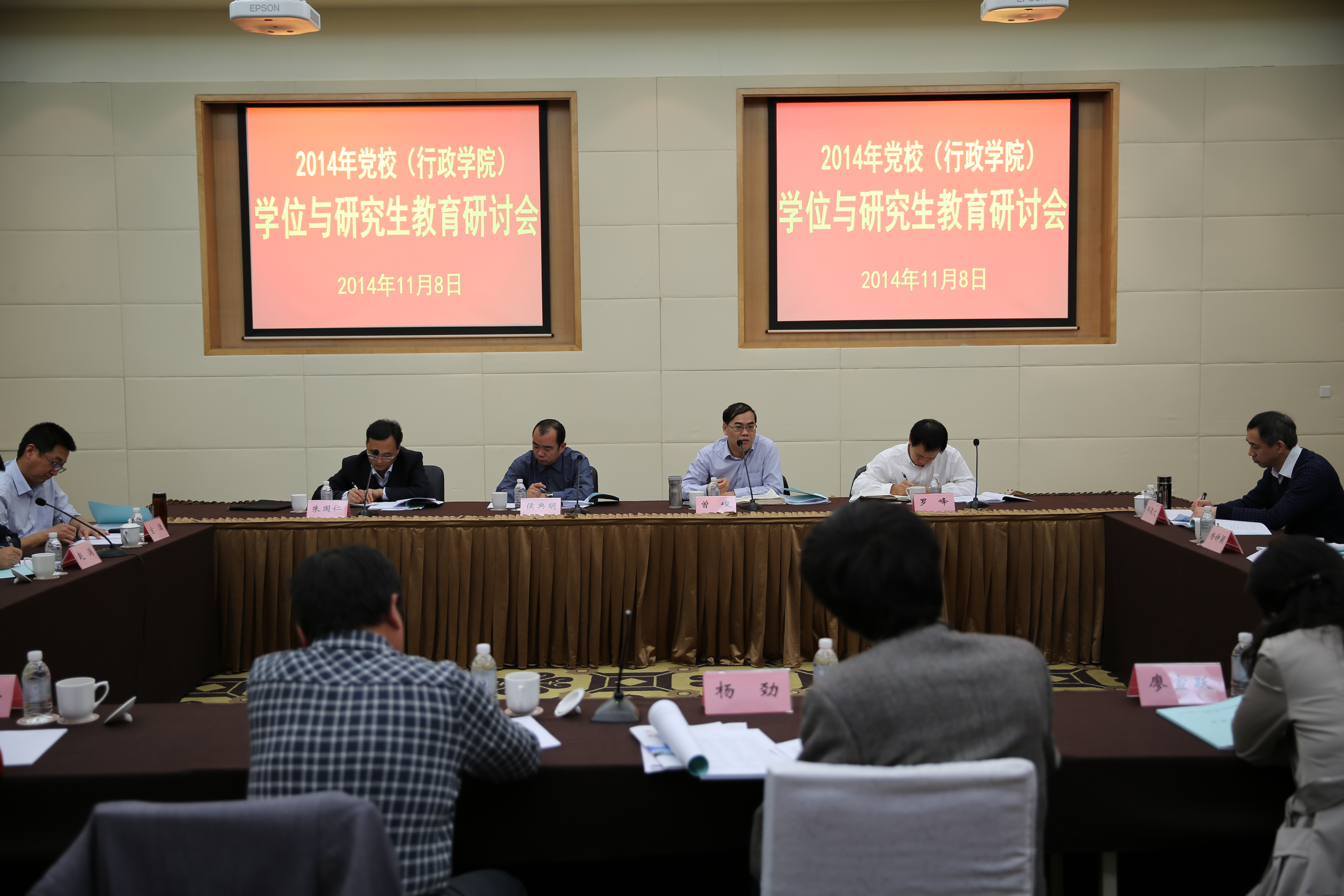 本网讯 为纪念我校学位与研究生教育成立十周年,11月8-9日,2014年党校(行政学院)学位与研究生教育研讨会在我校举行。会议由副校长曾峻主持,中央党校研究生院侯典明副院长、国家行政学院研究生院朱国仁副院长出席会议并讲话。40余名来自中央党校、国家行政学院以及11个省级党校主管研究生教育工作的校领导、研究生部负责人参与研讨。