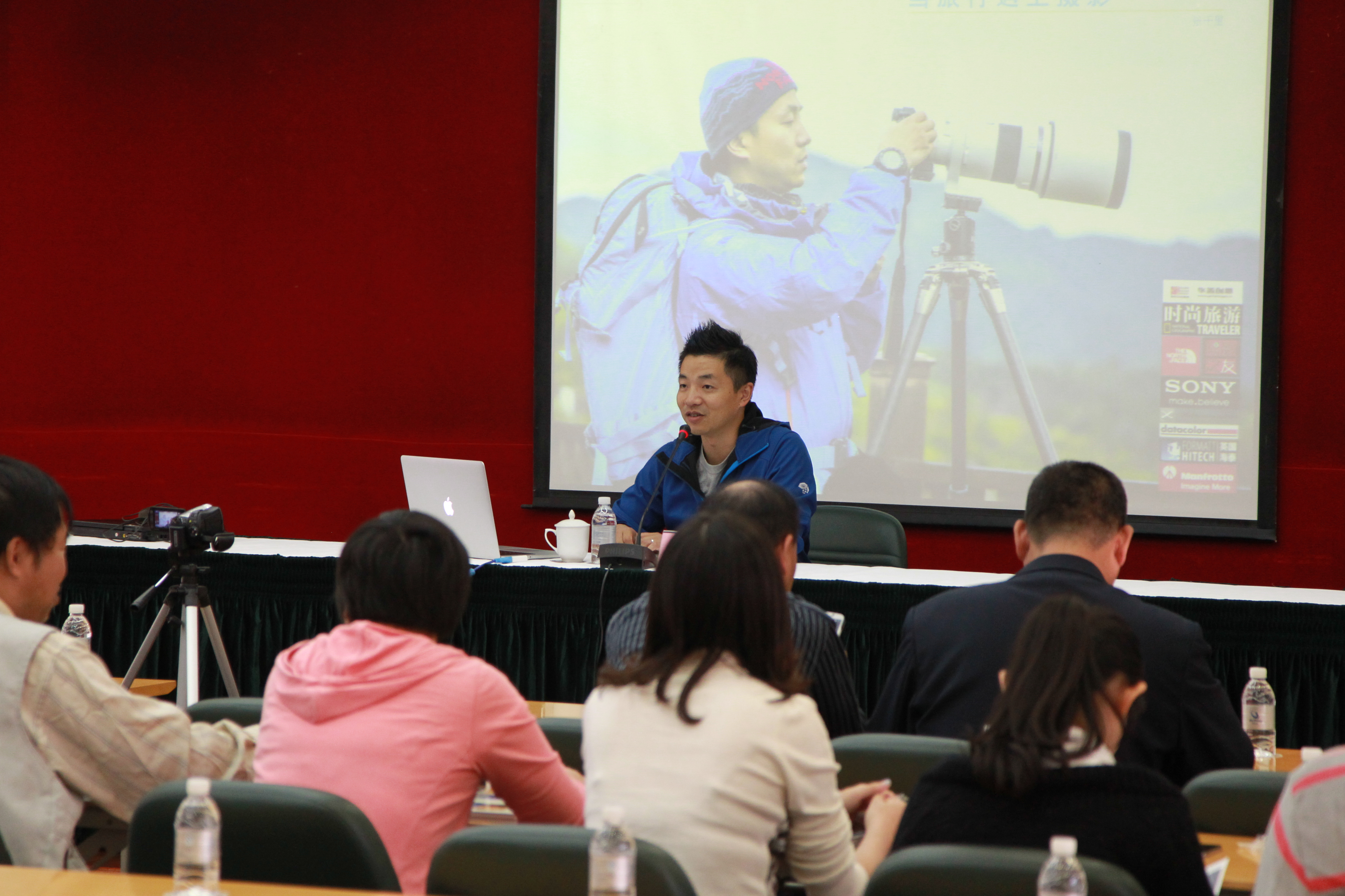 本网讯 10月28日中午,校摄影协会举行了一场主题为“当旅行遇到摄影”的讲座,著名人文地理摄影师张千里先生为大家讲授了从摄影器材的准备到不同场景下的照片如何拍摄等旅行中的摄影秘诀,也和大家分享了多年来他在全球旅行中所拍照片背后的故事。