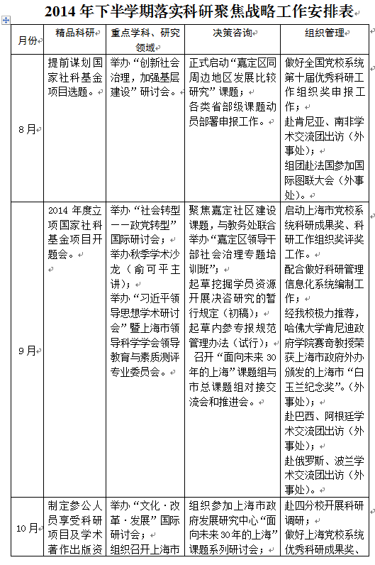 会议充分肯定了科研聚焦战略实施所取得的显著成效。会议强调,在科研总水平处于高位运行阶段,更要突出重点,进一步提高科研聚焦战略的实施绩效,更加充分发挥科研咨询对教学培训工作的支撑作用。一要对标国内一流学科水平,深入调查研究,加强过程管理,扎实推进重点学科建设和重点研究领域建设,使精品成果的质量更加充分地展现。二要充分认识党校、行政学院在国家、市委市府智库建设格局中的重要地位,尽快形成有效运行机制,努力提升决策咨询研究和智库建设水平。三要进一步加强教研咨一体化建设,使教研咨一体化真正成为校院工作的生命力源泉和竞争力资本。