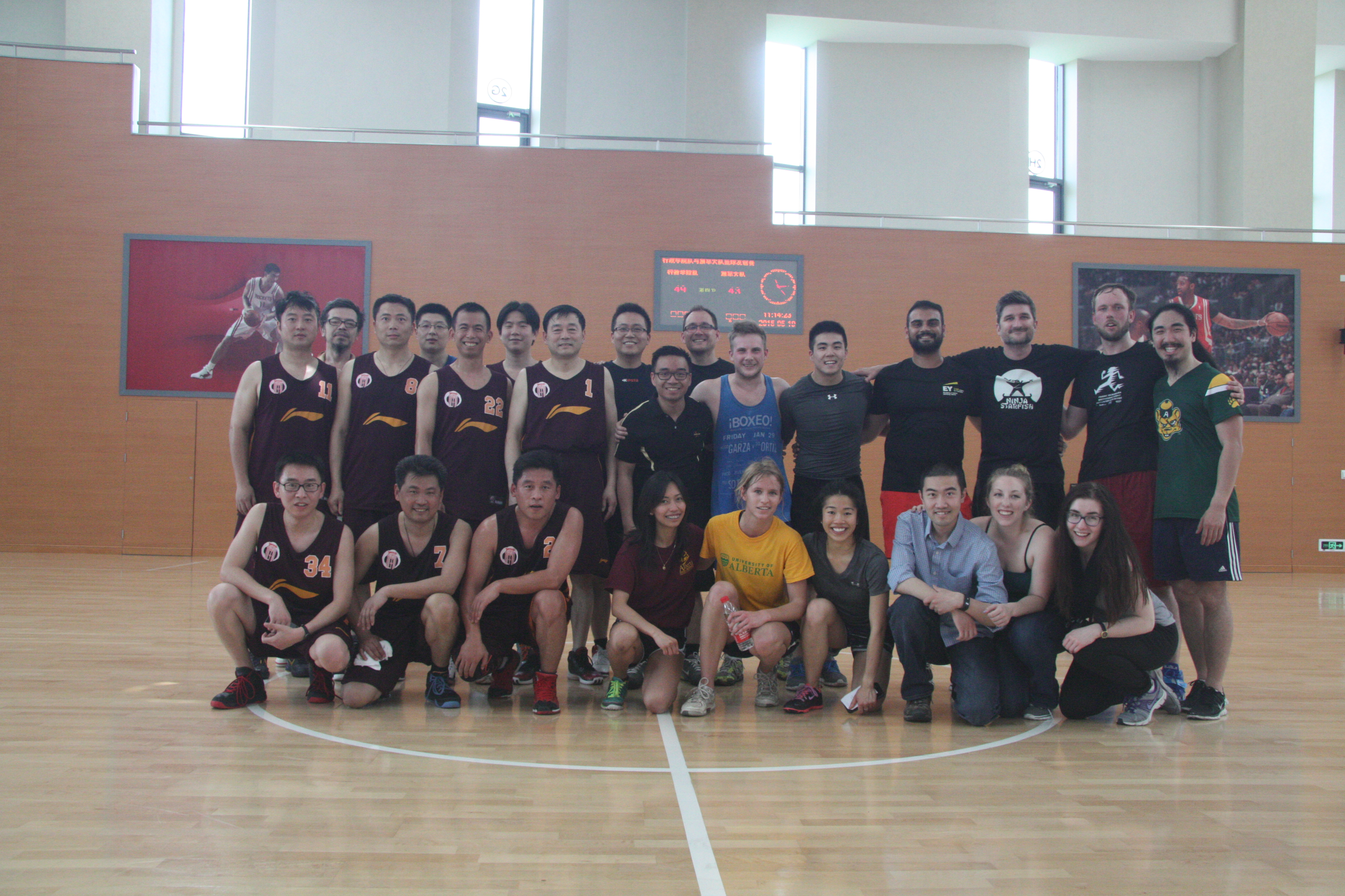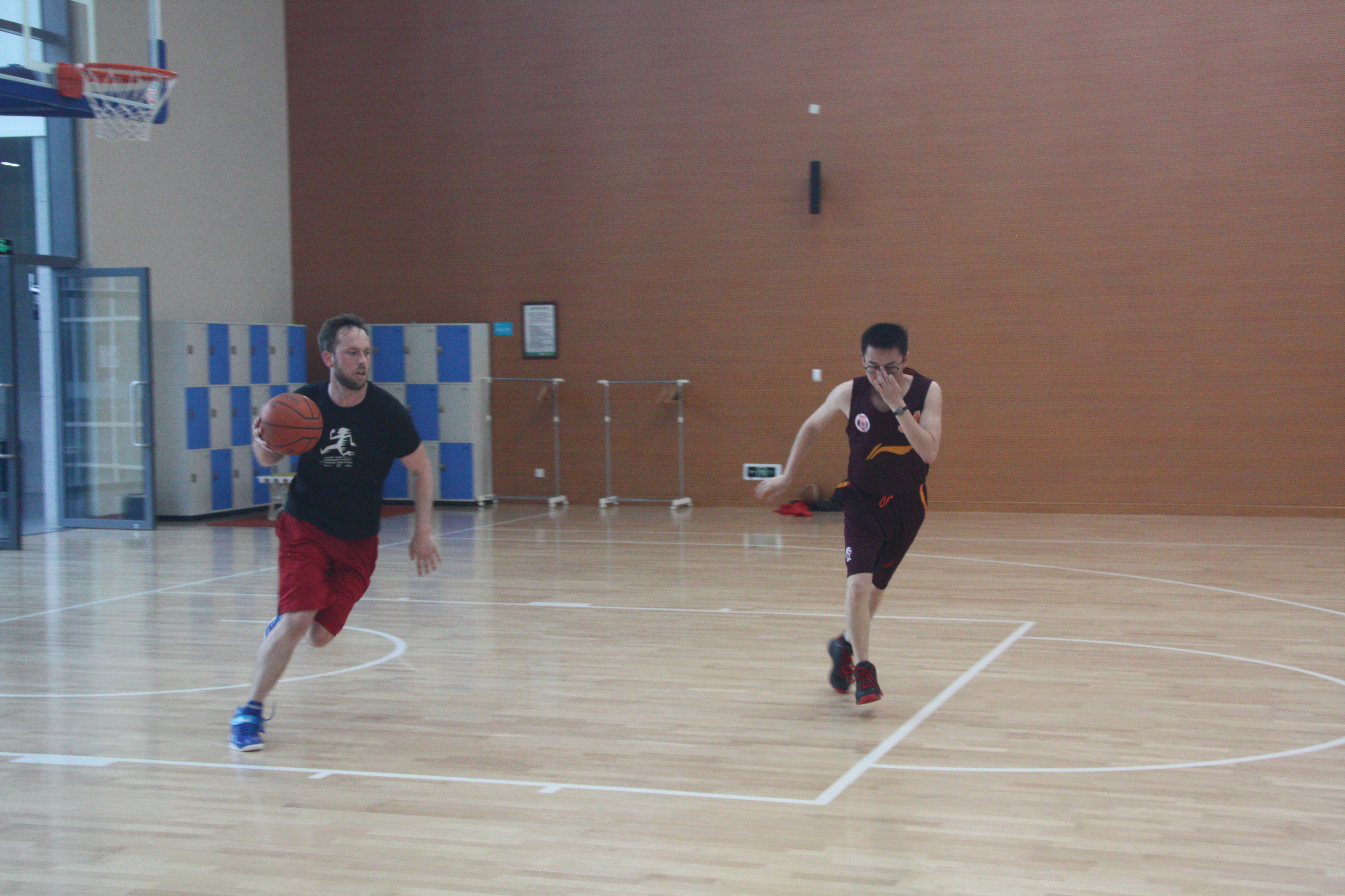 本网讯 近日,应到访的加拿大客人邀请,我院篮球队在文体中心二楼篮球馆与加拿大阿尔伯塔大学MBA访学团篮球队进行了一场篮球友谊赛。校委委员、副巡视员、院办公室主任、外事处处长李宁上场参赛。