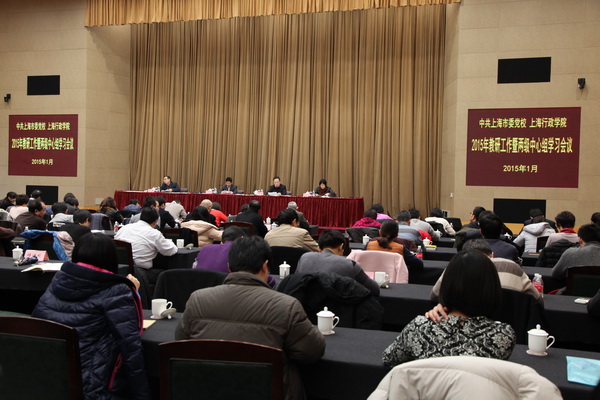 本网讯 1月13日下午,校委在海华101报告厅举行两级中心组专题学习会(扩大),传达学习上海第十届市委七次全会精神,并对全校学习贯彻全会精神、做好明年工作提出要求。常务副校院长王国平以交流学习体会的形式,结合自身的学习心得,围绕全会精神的学习与贯彻作了一次别开生面的学习辅导报告。会议由副校院长郭庆松主持。