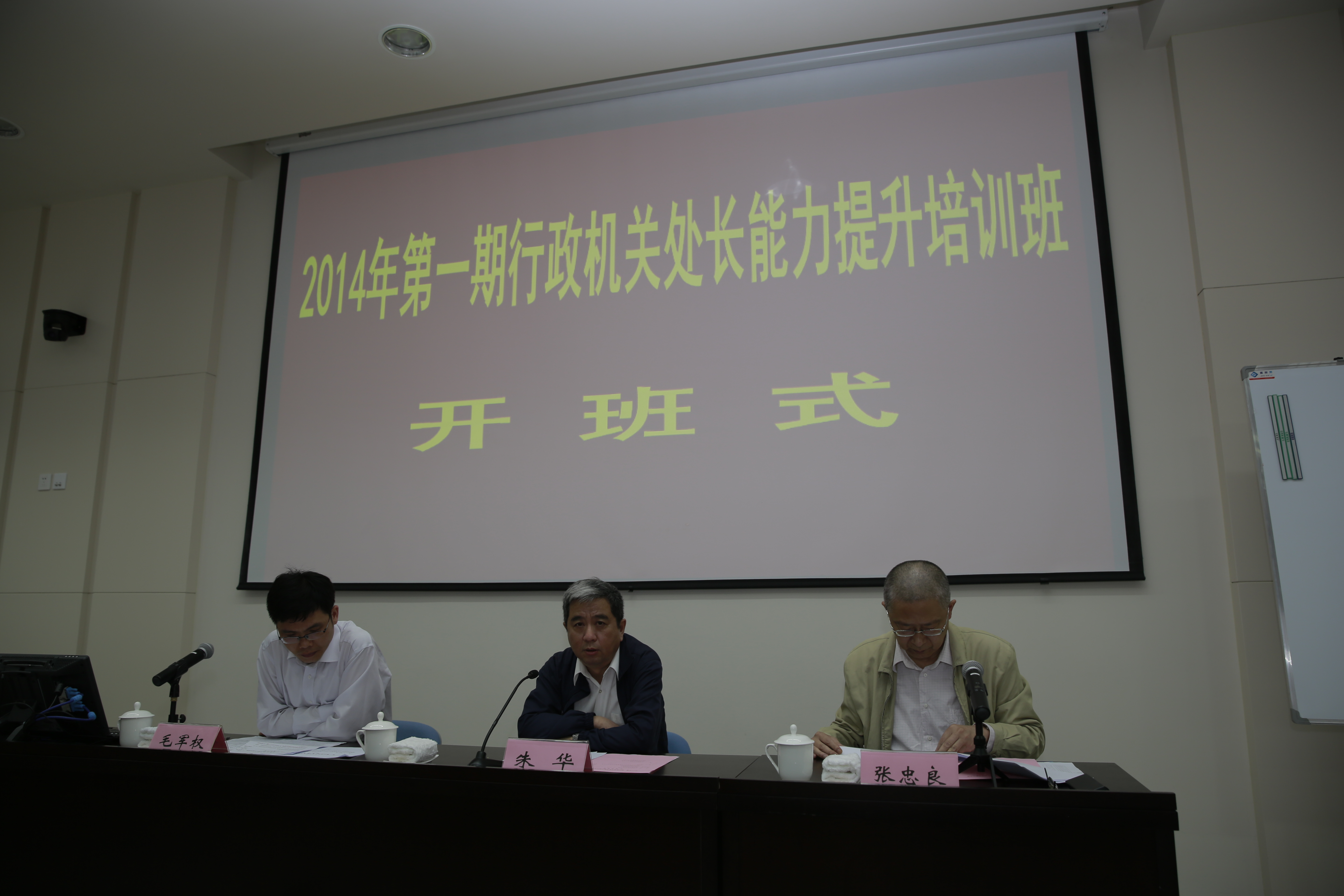 本网讯 5月19日上午,上海行政学院第一期行政机关处长能力提升专题培训班开班式在海华教学楼402教室举行,来自本市各区县和市级机关的40位正处长开始了为期两周的学习培训。副院长朱华出席并讲话,市公务员局副局长张忠良主持并宣布学员骨干名单。