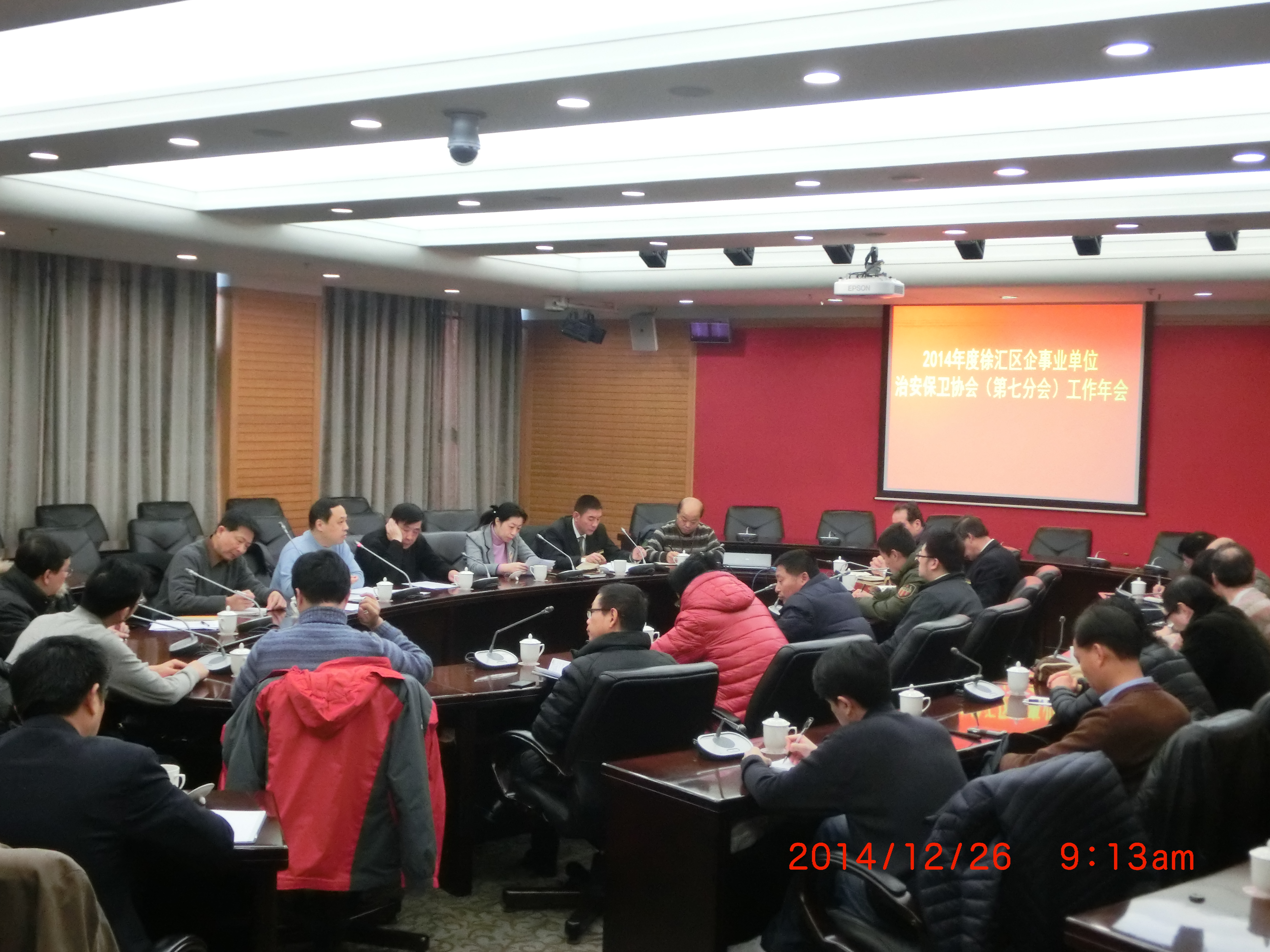 在我校安全保卫处与教务处、海兴大厦等部门通力协作下,2014年度徐汇区企事业单位治安保卫协会第七分会工作年会获得圆满成功,并得到了徐汇区公安分局的充分肯定及与会代表的一致称赞。徐汇区公安分局致力于通过召开年会等方式,进一步发挥协会在公安机关与企事业单位治安防范工作中的桥梁与纽带作用,探索安全防范新规律,促进《内保条例》的贯彻落实,进一步夯实企事业单位内部治安保卫工作基础,保障企事业单位的一方平安,为维护上海经济发展、治安稳定的大局发挥重要作用。
