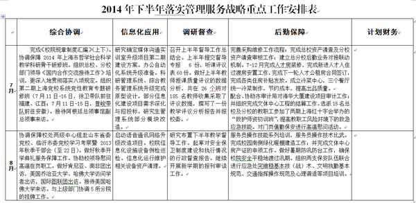 会议充分肯定了2014年下半年管理服务战略实施所取得的良好成效。会议指出,2014年下半年以来,管理服务各相关部门积极落实校委会要求,围绕“三个服务”要求,结合后半年校院工作新任务新发展,积极探索实践“全要素教育”新理念,梳理研究改进之处,细化重点工作安排及其推进措施,深入实施管理服务战略,全员努力、工作出彩,在提高服务的规范、精细、高效、人性化上取得了一系列新进展、新优化。