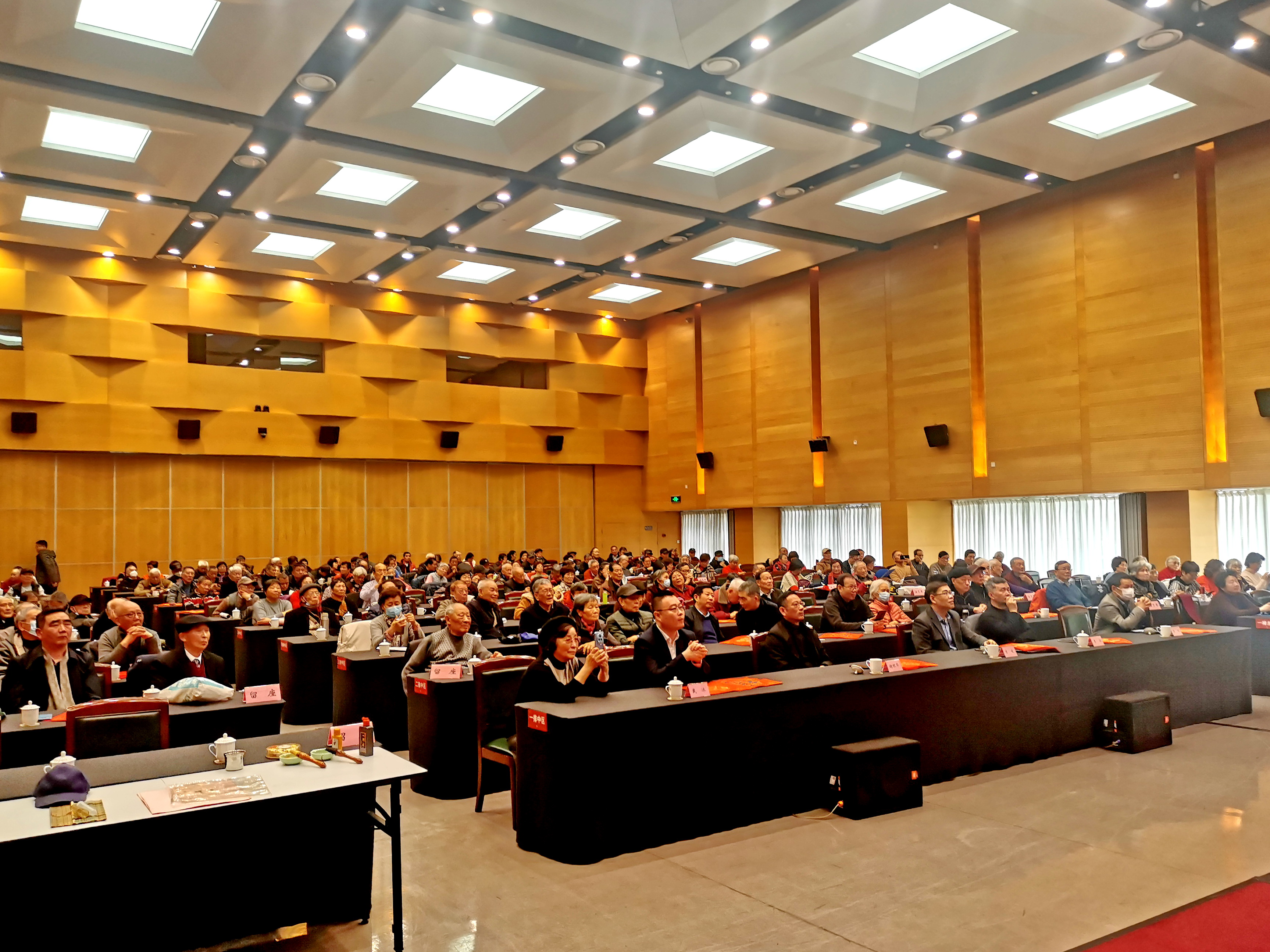 老同志们自编自演了丰富多彩的文艺节目,赢得阵阵掌声。有老同志自己诗词作品的配乐朗诵,反映上海乡土文化的沪剧表演《办喜事》,带着对国家粮食安全美好寓意的魔术《颗粒归仓》;参加过抗美援朝战争的老英雄吴无畏,用亲身经历讲述那个年代的理想和激情;还有歌曲《我爱这蓝色的海洋》,抒发了对祖国辽阔海疆的热爱之情。节目汇演中,文学艺术兴趣小组的老同志还现场为大家写“福”字送祝福。团拜会在歌咏兴趣小组的《我把一切献给党》的歌声中圆满落下帷幕。