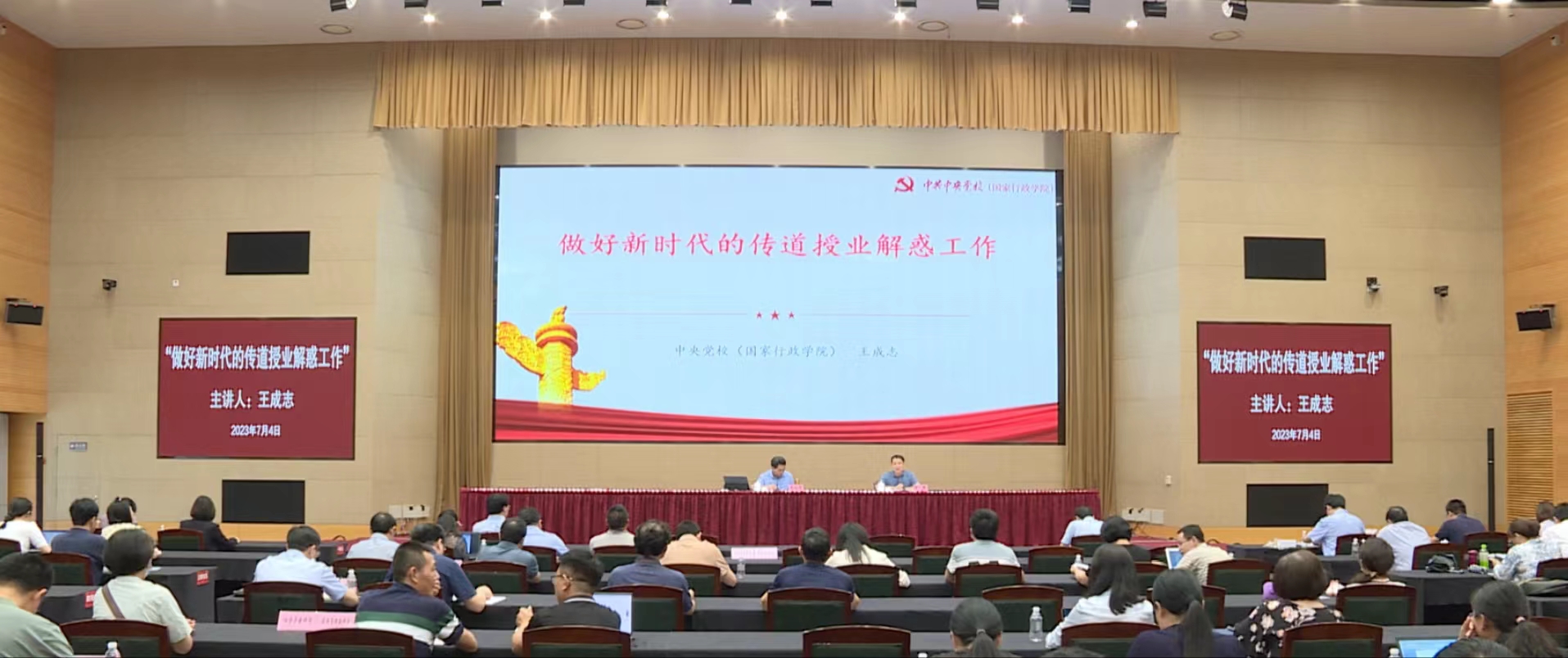 本网讯 7月4日上午,中央党校副教育长王成志应邀来校作师资培训专题讲座,主题为“做好新时代的传道授业解惑工作”。市委党校(行政学院)教育长罗峰主持。