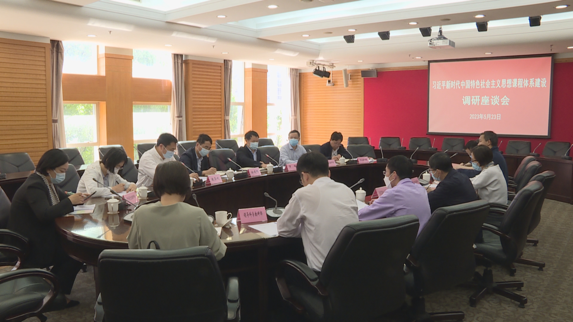 本网讯 5月23日,校(院)召开习近平新时代中国特色社会主义思想课程体系建设调研座谈会,常务副校(院)长徐建刚出席,教育长罗峰主持。