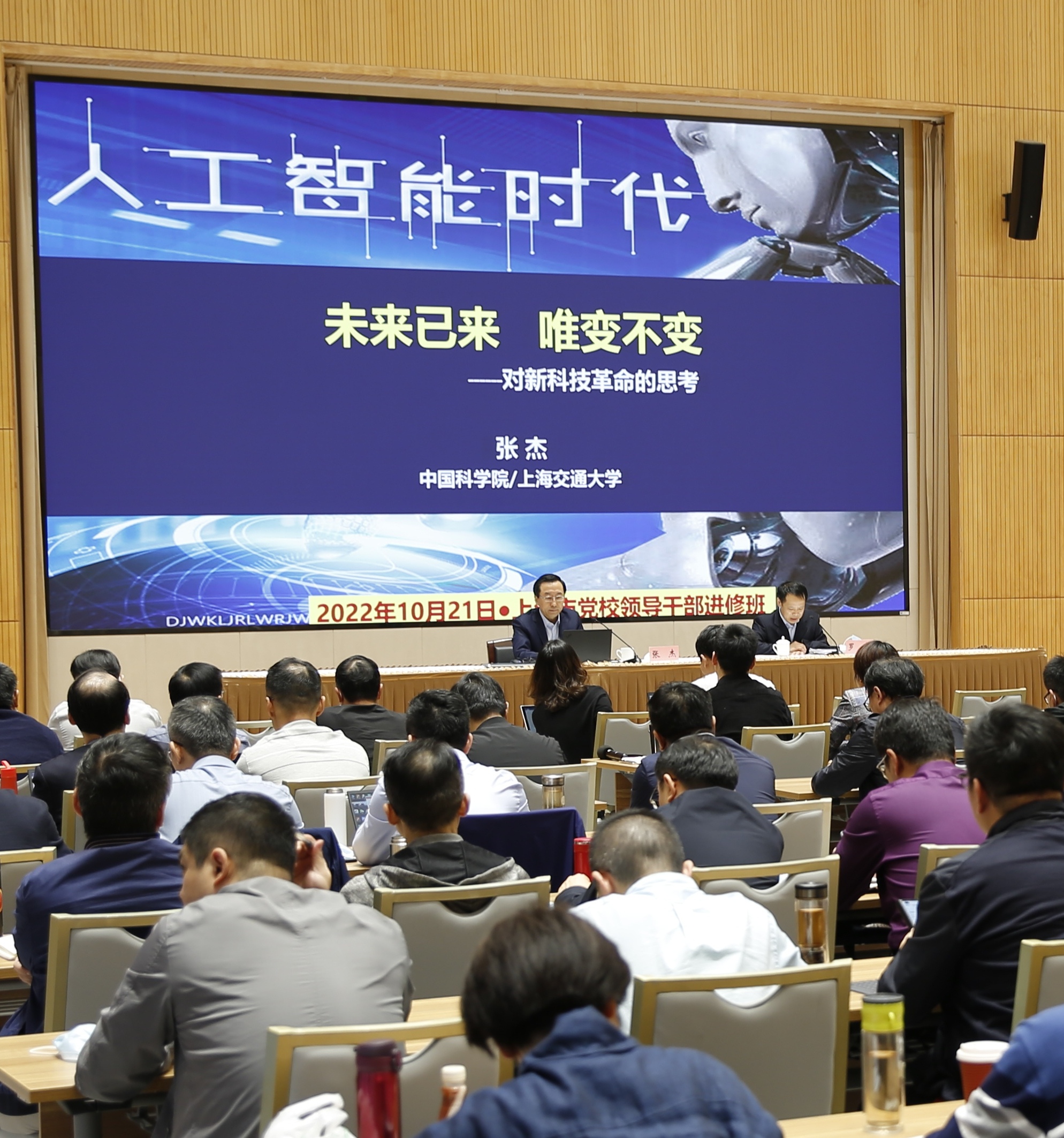 本网讯 10月21日下午,著名物理学家、上海交通大学原校长、中国科学院张杰院士做客新时代讲坛,做“未来已来,唯变不变——对新科技革命时代的思考”专题报告。教育长罗峰主持。