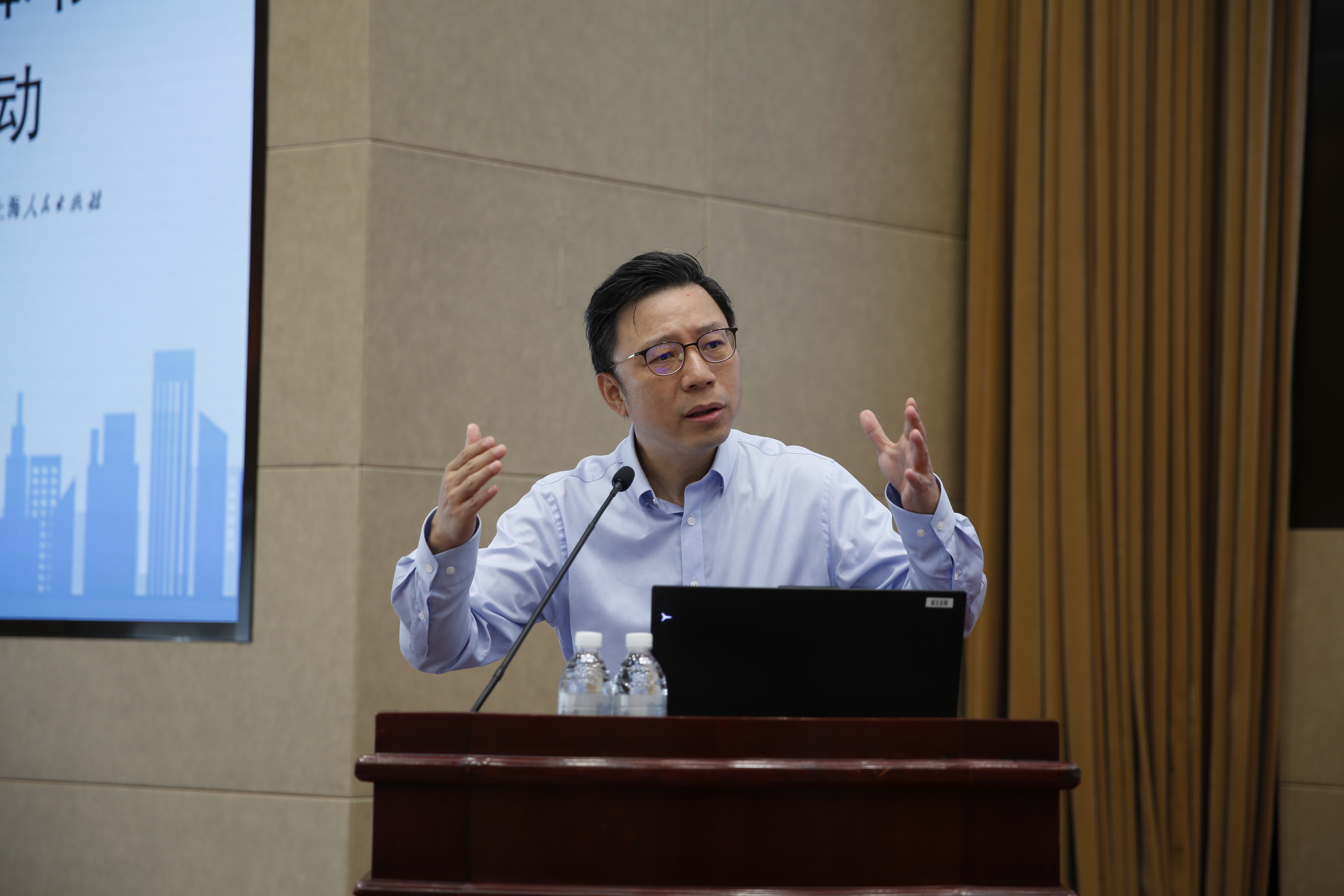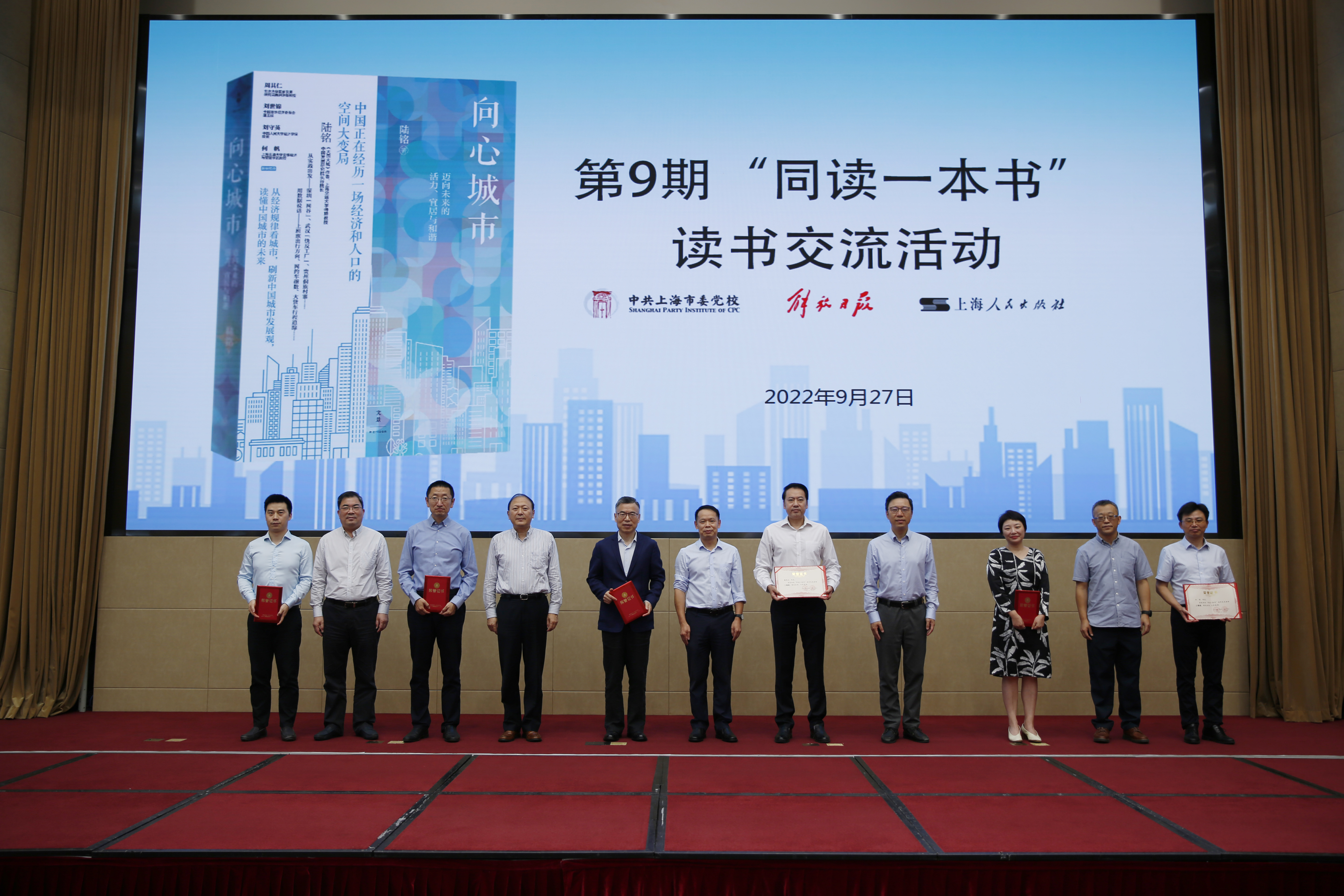 本网讯 9月27日上午,校(院)举办第9期“同读一本书”读书交流活动。本次读书交流活动选取《向心城市:迈向未来的活力、宜居与和谐》一书,特邀该书作者上海交通大学安泰经济管理学院特聘教授陆铭出席活动并发表演讲。校(院)教育长罗峰、解放日报社党委副书记周智强、上海人民出版社社长温泽远、市委组织部干部教育处副处长施耀庭、解放日报读书周刊主编顾学文出席活动。