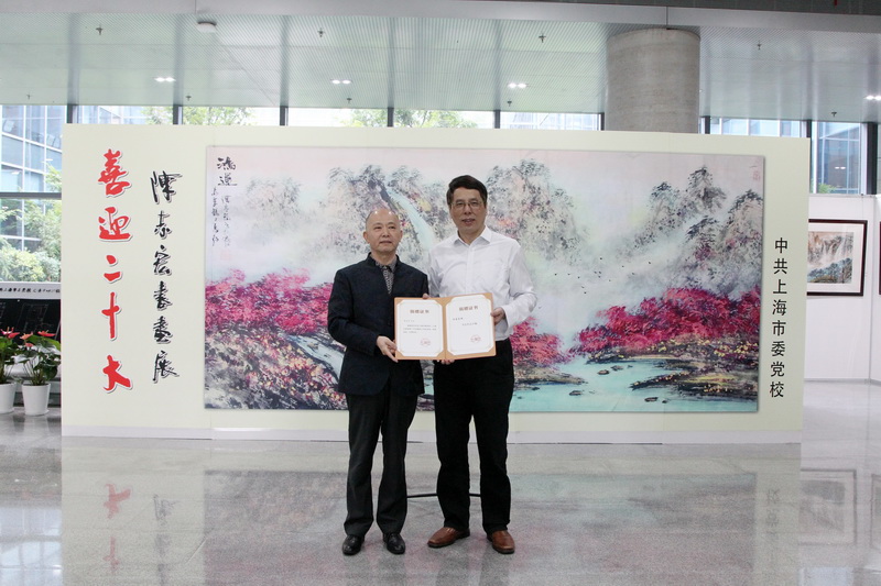 本网讯 9月30日上午,“喜迎二十大——陈志宏书画展”开幕式暨捐赠仪式在市委党校文体中心举行。展览展出了著名海派书画家陈志宏先生的88幅书画作品。常务副校(院)长徐建刚出席并致辞,副校(院)长、机关党委书记李渤主持,校(院)相关部门负责人和教职工代表参加了仪式。