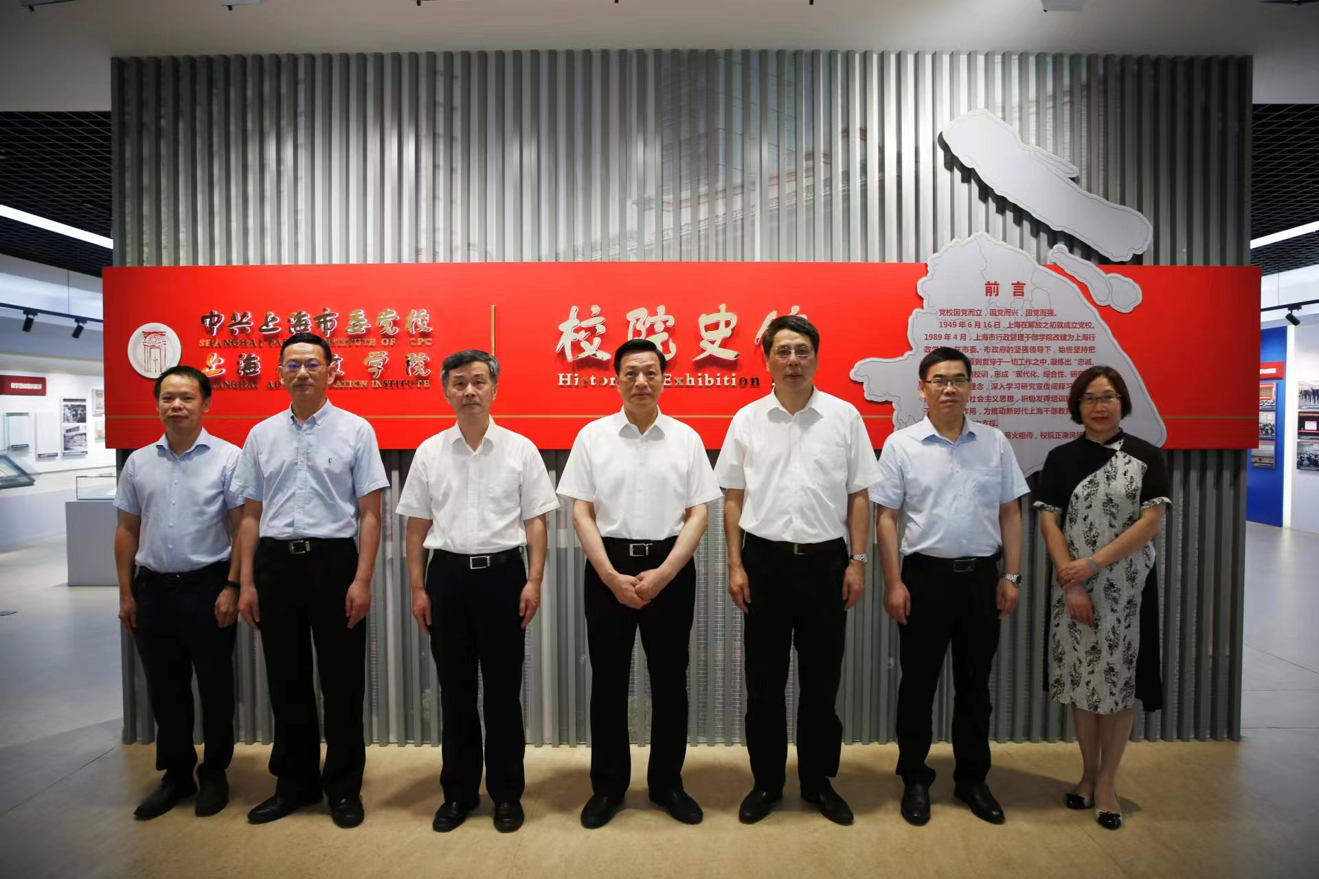 胡文容参观了校(院)史馆和红色上海主题教室,详细了解上海市委党校73年的发展历程和红色上海主题教室的建设使用情况。