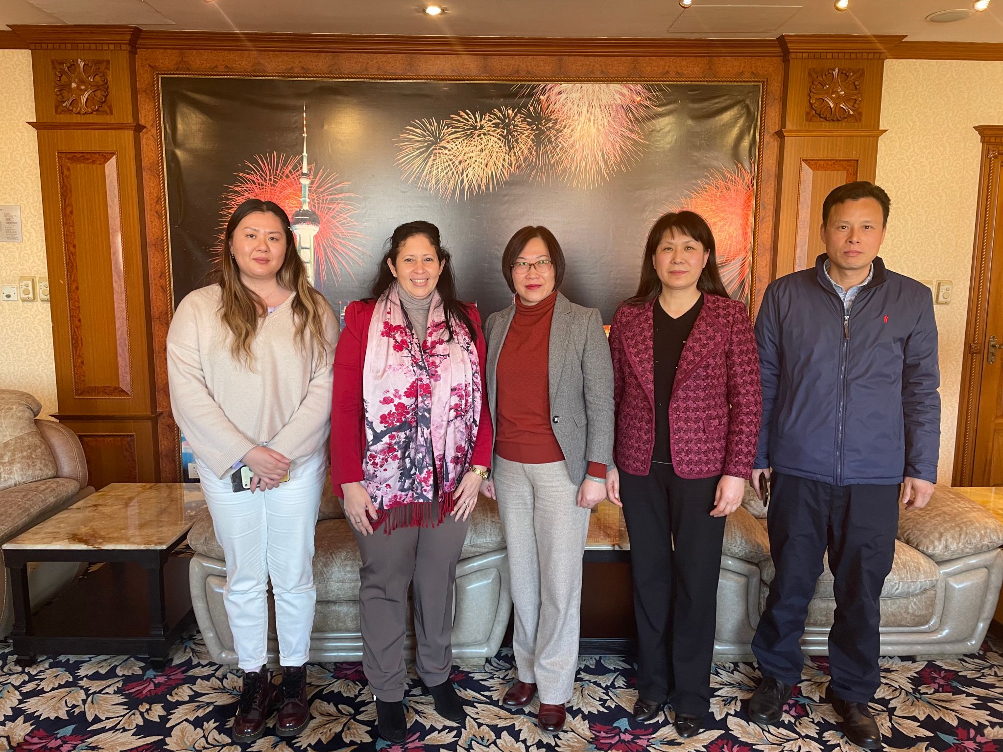 本网讯 2月24日下午,古巴驻上海总领事馆新任总领事梅来迪(MILEIDY AGUIRRE DIAZ)女士一行来上海行政学院进行礼节性访问,副院长梅丽红主持会见。