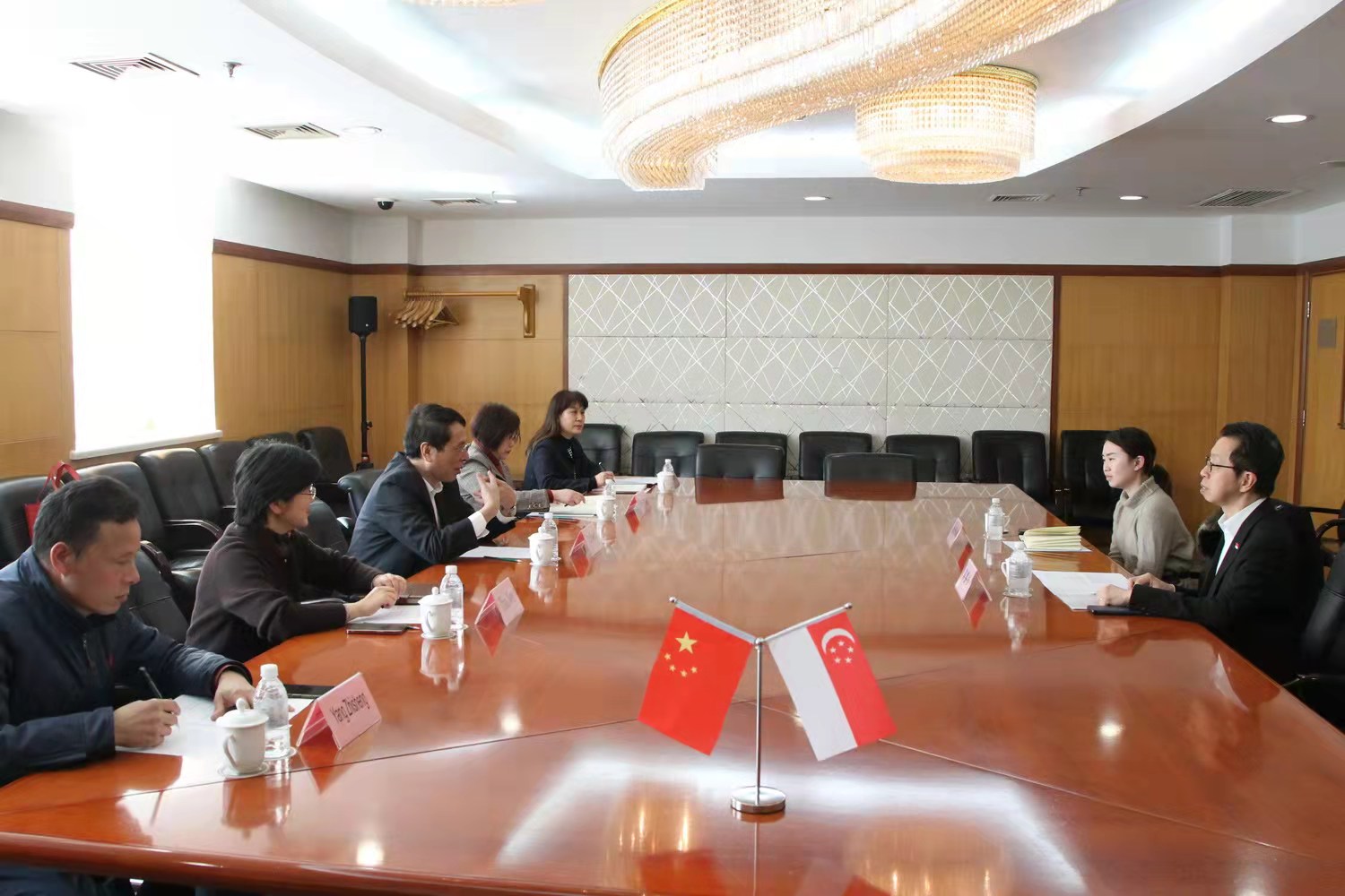 本网讯 2月25日上午,新加坡驻沪总领馆总领事蔡簦合,在政治领事饶舒婷的陪同下来上海行政学院访问,就学院和新加坡公共服务署签订的合作备忘录后续各项事宜进行跟进落实,并具体探讨沪新两地合作交流领域。常务副院长徐建刚主持会见,副院长梅丽红陪同会见,二级巡视员(主持公务员培训处工作)赵彣和外事处有关同志出席会见。