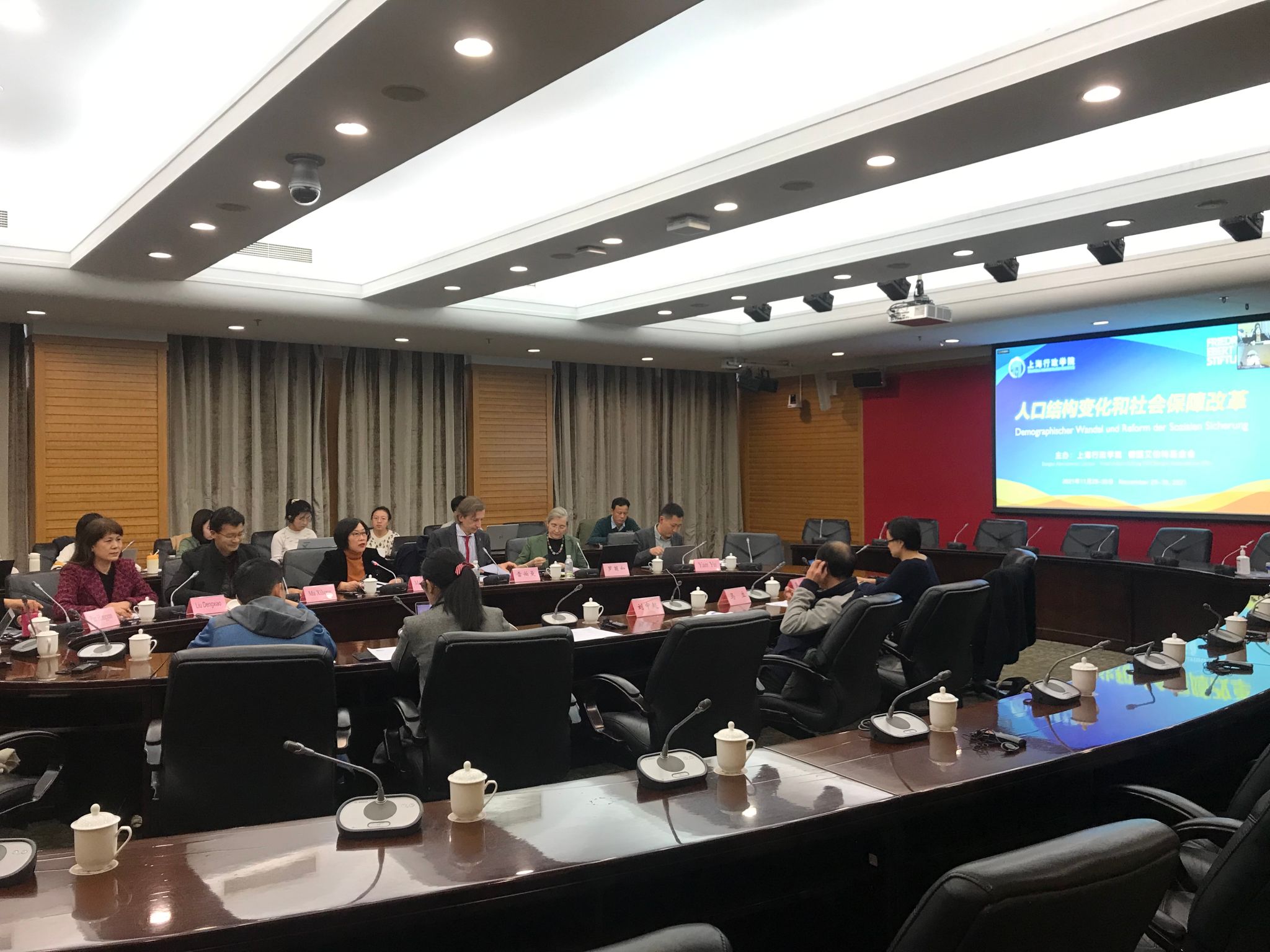 本网讯 11月29日和30日,中德“人口结构变化和社会保障改革”双边学术研讨会在我院成功举办。本次研讨会由上海行政学院和德国艾伯特基金会上海代表处共同组织,重点讨论人口结构变化带来的新挑战以及生育促进政策、养老保险改革、老年人护理等社会保障议题。会议旨在增进中德双方在相关议题上的交流和借鉴,副院长梅丽红教授和艾伯特基金会上海代表处首席代表雷伯曼先生出席会议并致辞,中德双方近30人参加了会议研讨。