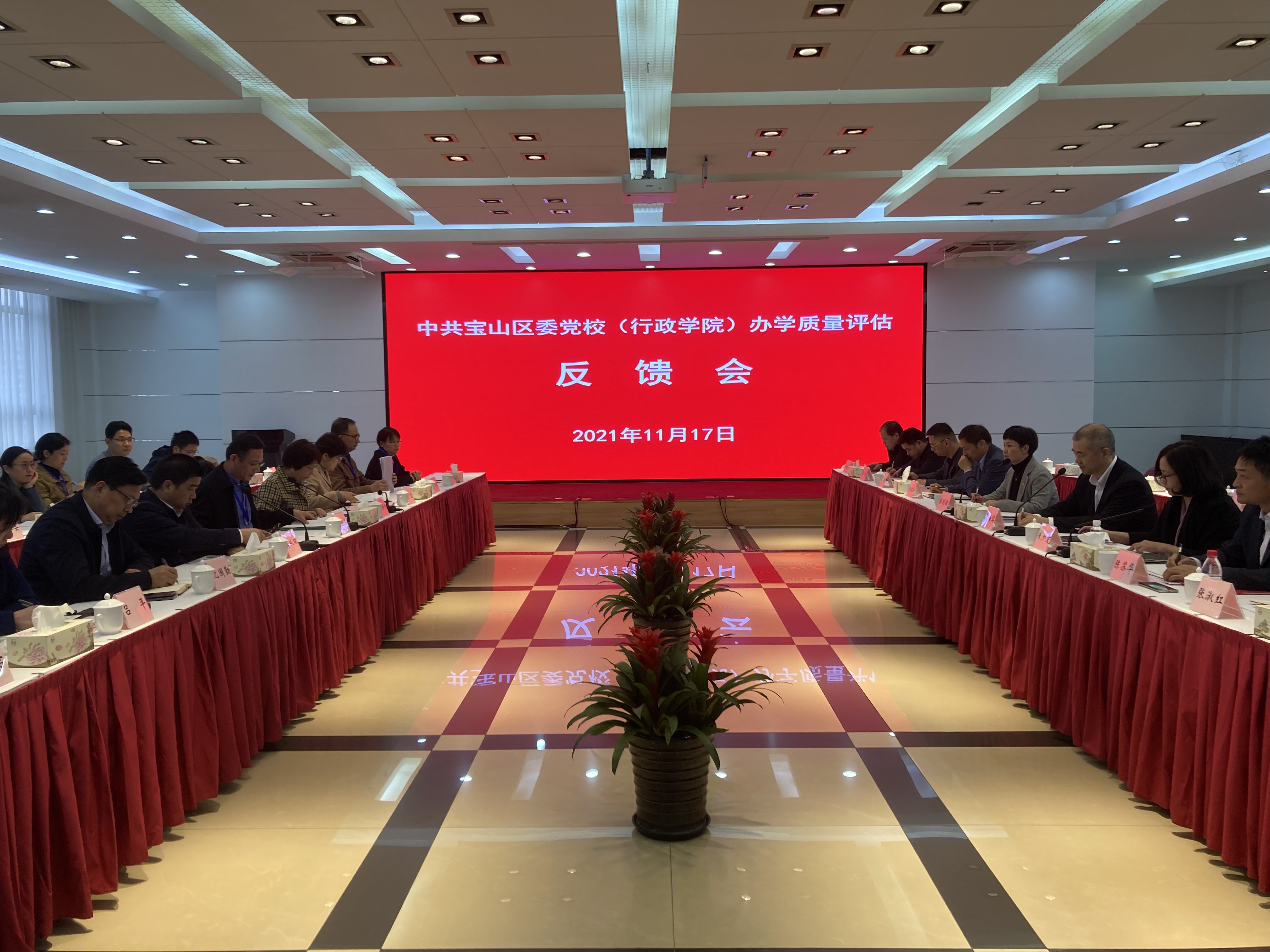 本网讯 11月17日,上海市区级党委党校(行政学院)办学质量评估工作组对宝山区委党校(行政学院)开展办学质量评估。市委党校(行政学院)副校(院)长、评估工作组组长谢根华,市委组织部干部教育处处长、评估工作组组长洪峰,市委组织部干部教育处、市委党校(行政学院)相关负责同志一行22人莅临指导。宝山区委常委、组织部部长、党校校长徐静,组织部副部长张海滨,宝山区委党校(行政学院)领导班子及各科室负责人参加会议。