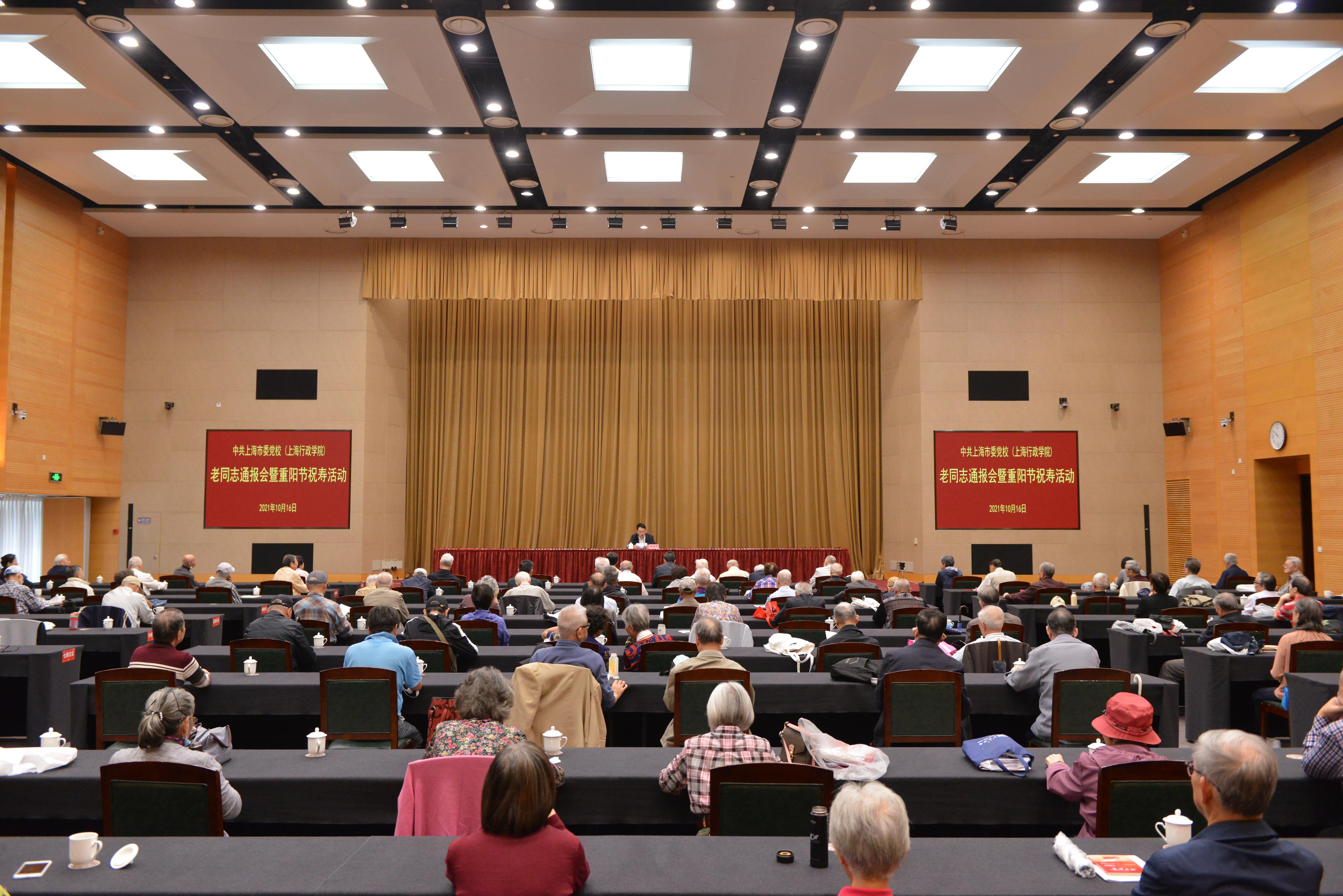 本网讯 10月16日,中国传统重阳佳节到来之际,校(院)在海华101报告厅为离退休老同志举行集体祝寿活动,并向老同志通报过去一年的校(院)改革发展情况。常务副校(院)长徐建刚、副校(院)长李渤出席,与老同志共话发展、共贺佳节。今年适逢70周岁和80周岁及以上的离退休老同志,离退休第一、第二党支部党员以及各离退休党支部书记、副书记、委员和非党小组组长等150余人参加活动。