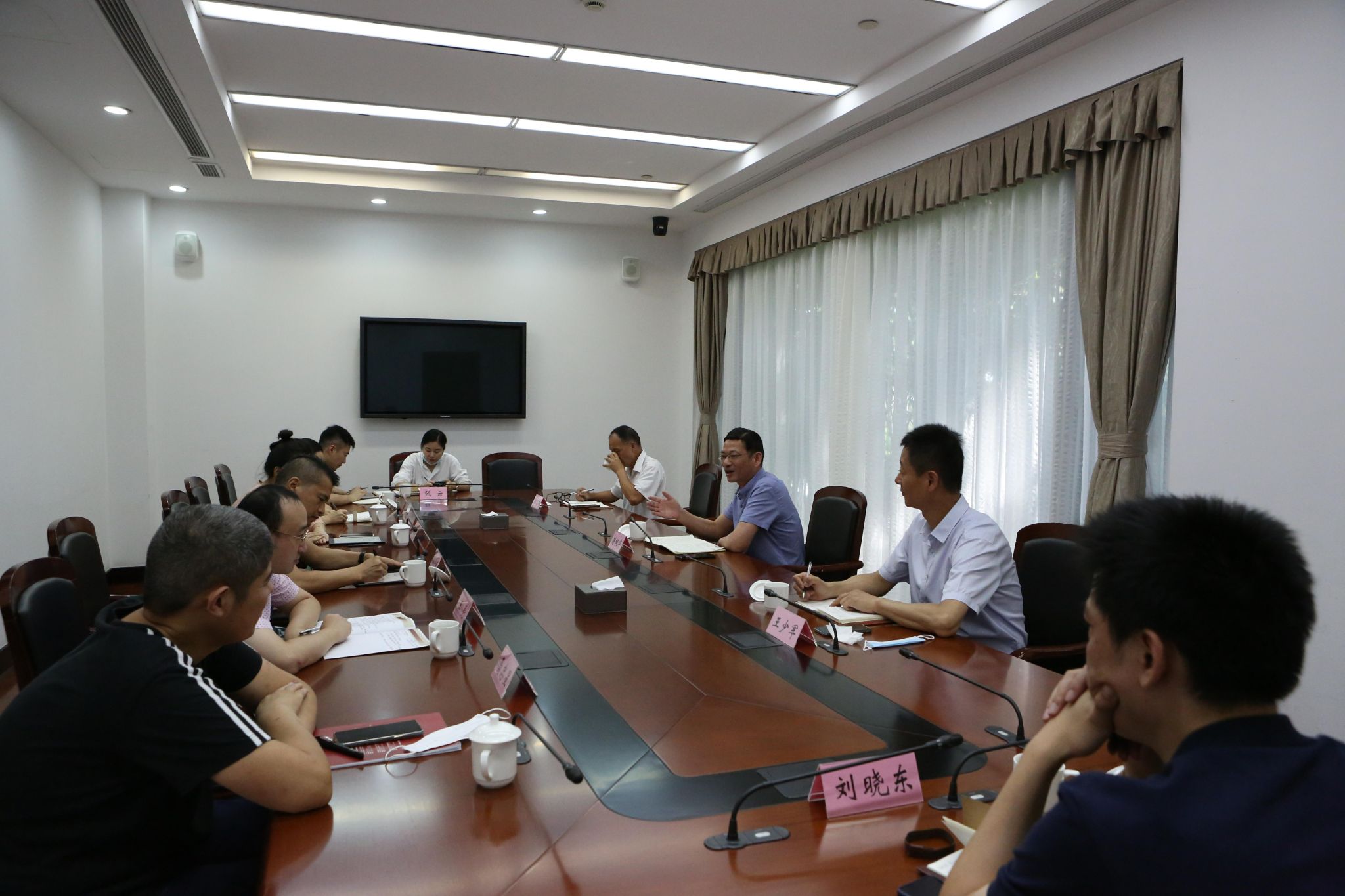 实地走访后,谢根华主持召开座谈会,听取部门负责人工作汇报,肯定了淀山湖校区暑期承办3个重点班次及新学期开学各项准备工作,并对疫情防控常抓不懈、校区文化建设、内河蓝藻问题作出要求。谢根华强调,要推动校区各项工作做实、做细、做精,对症下药,把事做实;灵活变通,把事做细;善于比较,把事做精。校区办全体工作人员要深刻领悟习近平总书记重要讲话精神,做到学史力行,锤炼党性、为民服务、推动发展,一是带头实践,深化理论学习,在学懂弄通做实上下足功夫,学有成果;二是爱岗敬业,服从组织安排,努力钻研业务,勤勉用心做出成就;三是团结协作,互相尊重理解,提高沟通能力,积极维护团队名誉,让工作更加出彩。