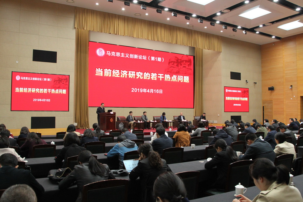本网讯 为大力实施马克思主义理论创新工程,聚焦国家和上海改革发展中的重大理论和现实问题,加大学术研究和理论宣传,增进与国内外研究机构、高等院校的交流与合作,校院开设举办“马克思主义创新论坛”,第1期创新论坛于4月16日上午在海华教学楼101报告厅举行,主题为“当前经济研究的若干热点问题”。副校院长郭庆松作开幕致辞,经济学教研部主任唐珏岚主持,校院和本市党校系统90余人参加。